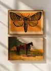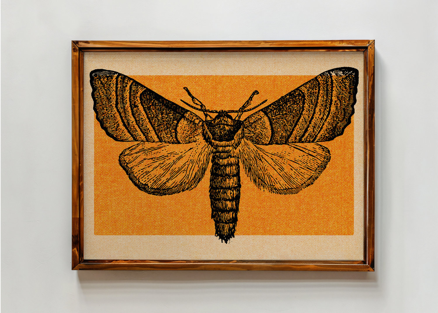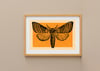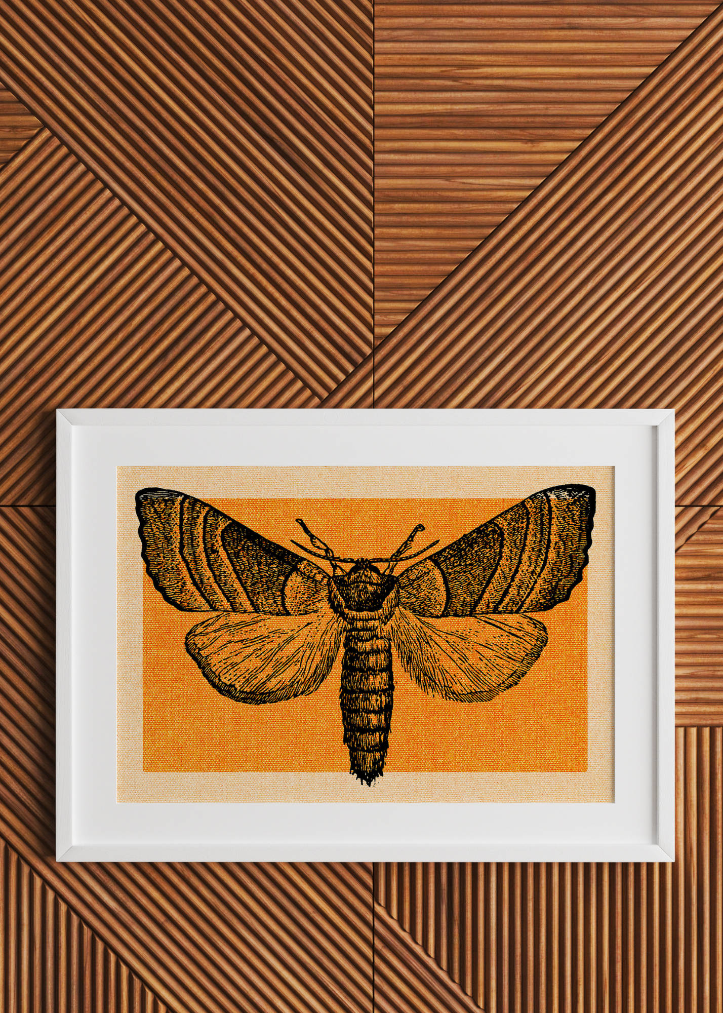 Orange Moth— A rich orange-yellow background with a warm paper texture holds a simple black line-drawn moth—delicate, dreamy, and full of quiet strength and magic. It’s a little mystical, a little playful—and just right for those who follow their own light, even when it flickers.