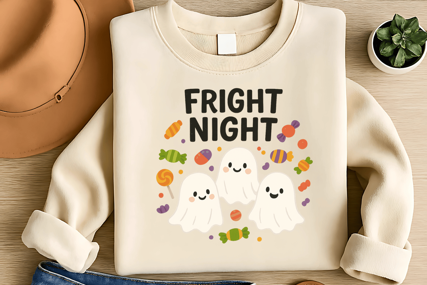 Haunted Candy Ghosts Sublimation PNG – “Fright Night” Halloween T-Shirt Clipart – Cute & Spooky Design – 300 DPI Instant Digital Download