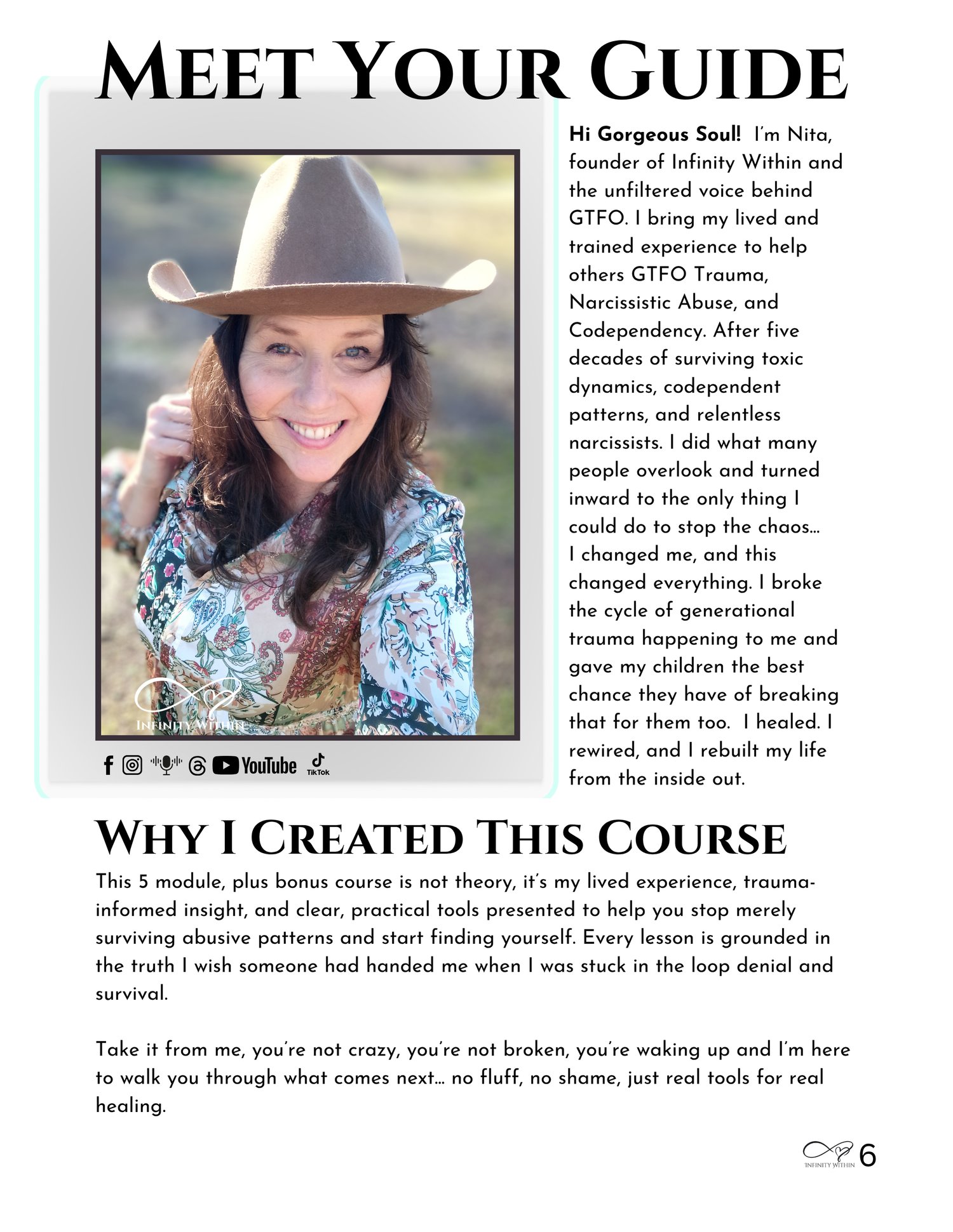 This is a self-help tool created to support your healing and growth journey. It is not a substitute for therapy, medical care, or crisis support. What you put into this process is what you will get out of it. Results may vary.