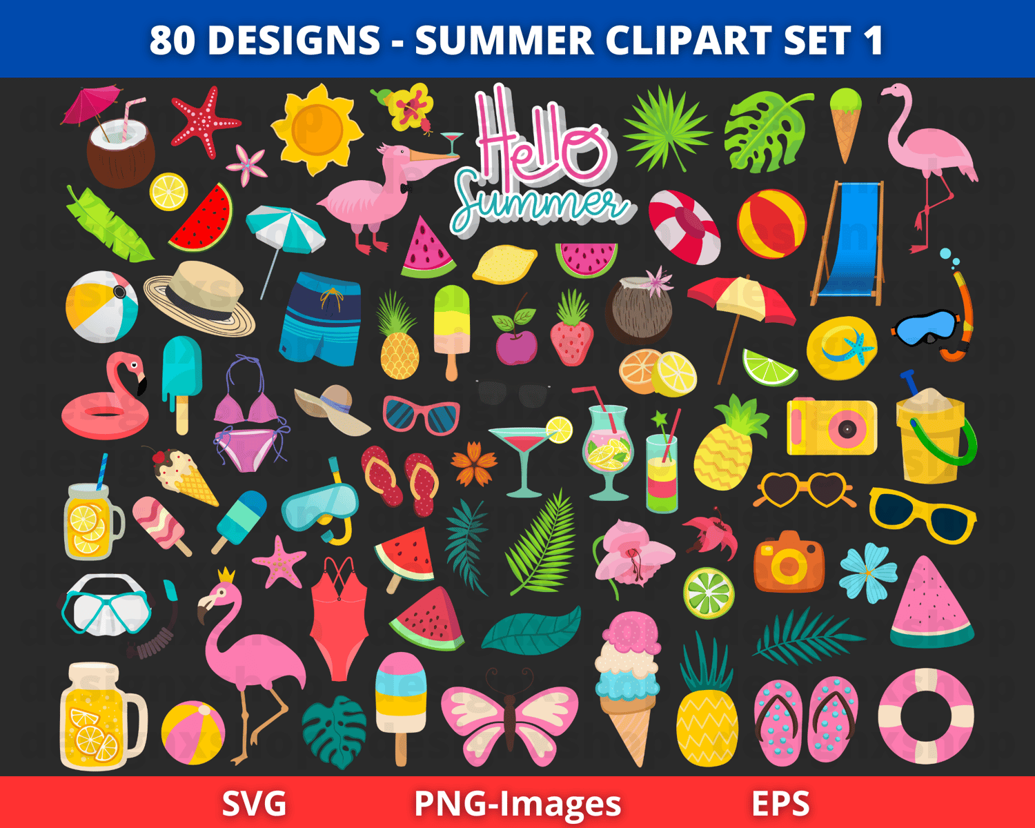 summer clipart set, Summer clipart, Popsicles clipart, beach clipart, Tropical Fun Clipart, Instant Download SVG and PNG