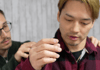 M.T. is back! He is promoting a massage gun, and when he uses the remote he freezes me. After moving my body around, I freeze him and start playing with his hands, face and hair. Finally I take his coat and put him frozen at the wall