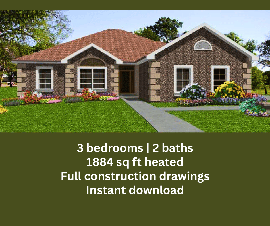 Taylor Ranch House Plan | 3 bedrooms 2 baths | 1884 sq ft | Slab foundation