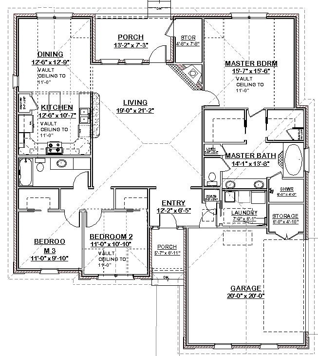 Ceiling Height: 9' throughout with Vaulted Ceiling to 11-0 in Kitchen, Living Master and Bedroom 2.