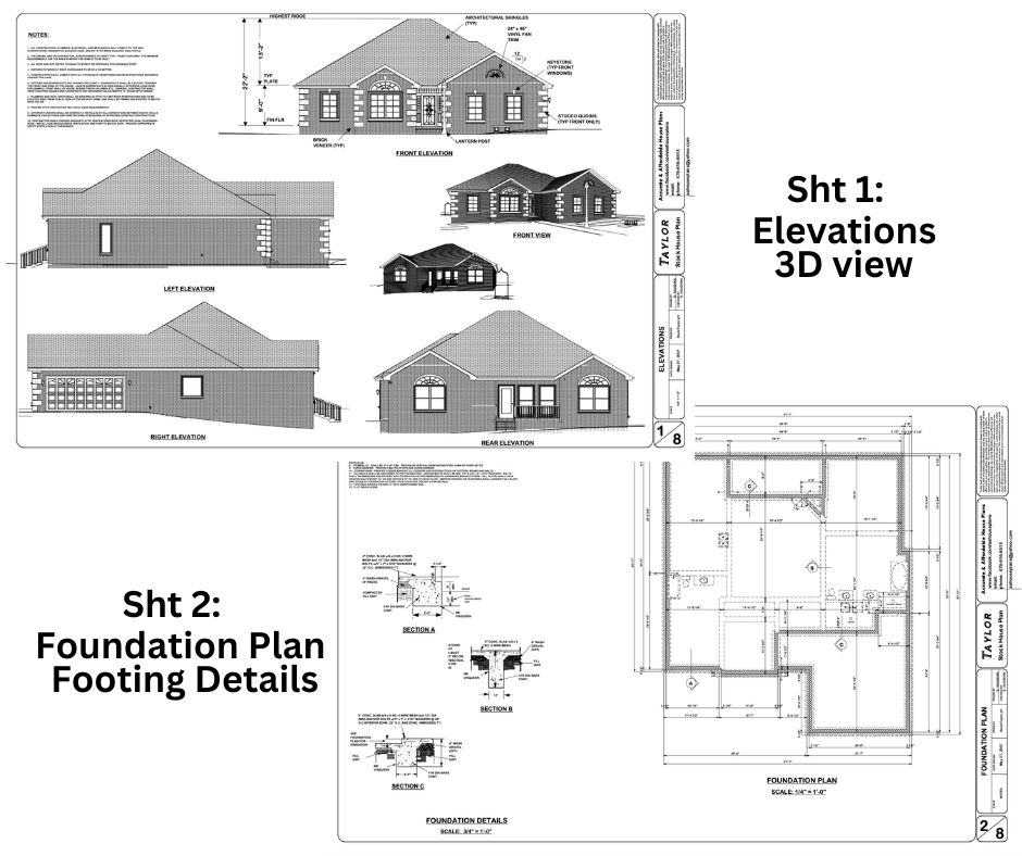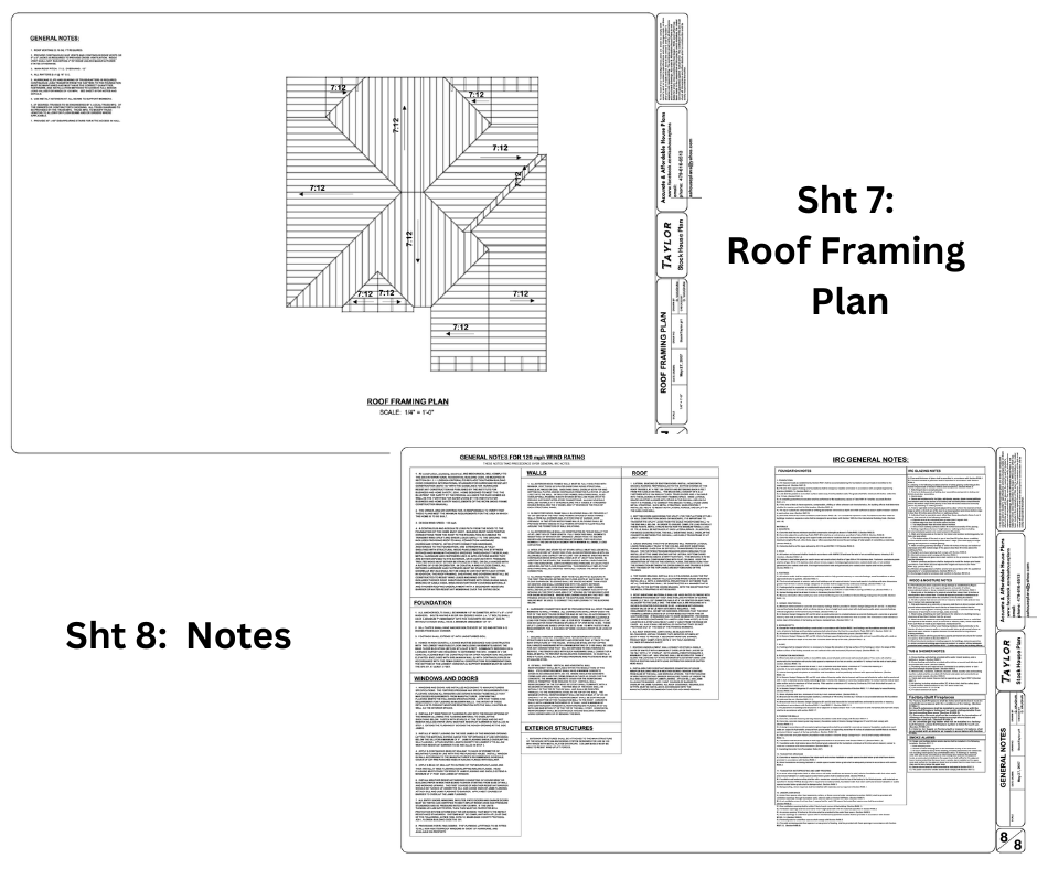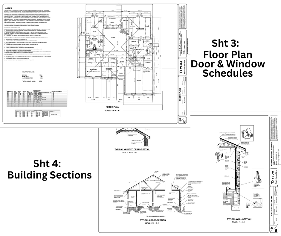 Your full construction blueprint set includes everything needed for permitting and building (PDF format, 24”x36”):