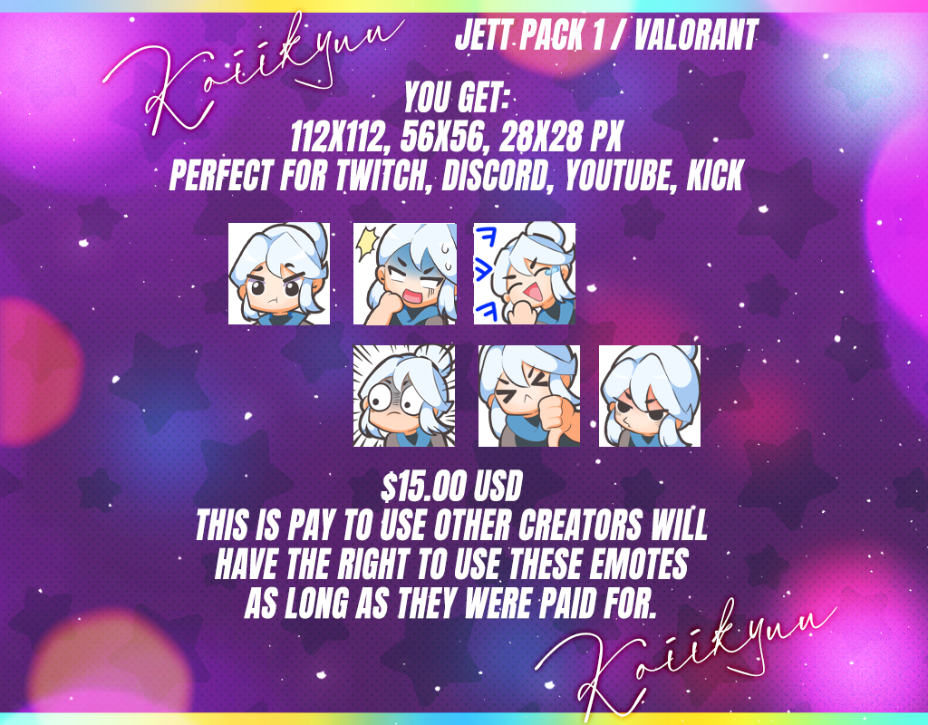 ⋆⁺₊⋆ Includes 6 Jett from Valorant Emotes in 112 x 112, 56 x 56 and 28 x 28 px