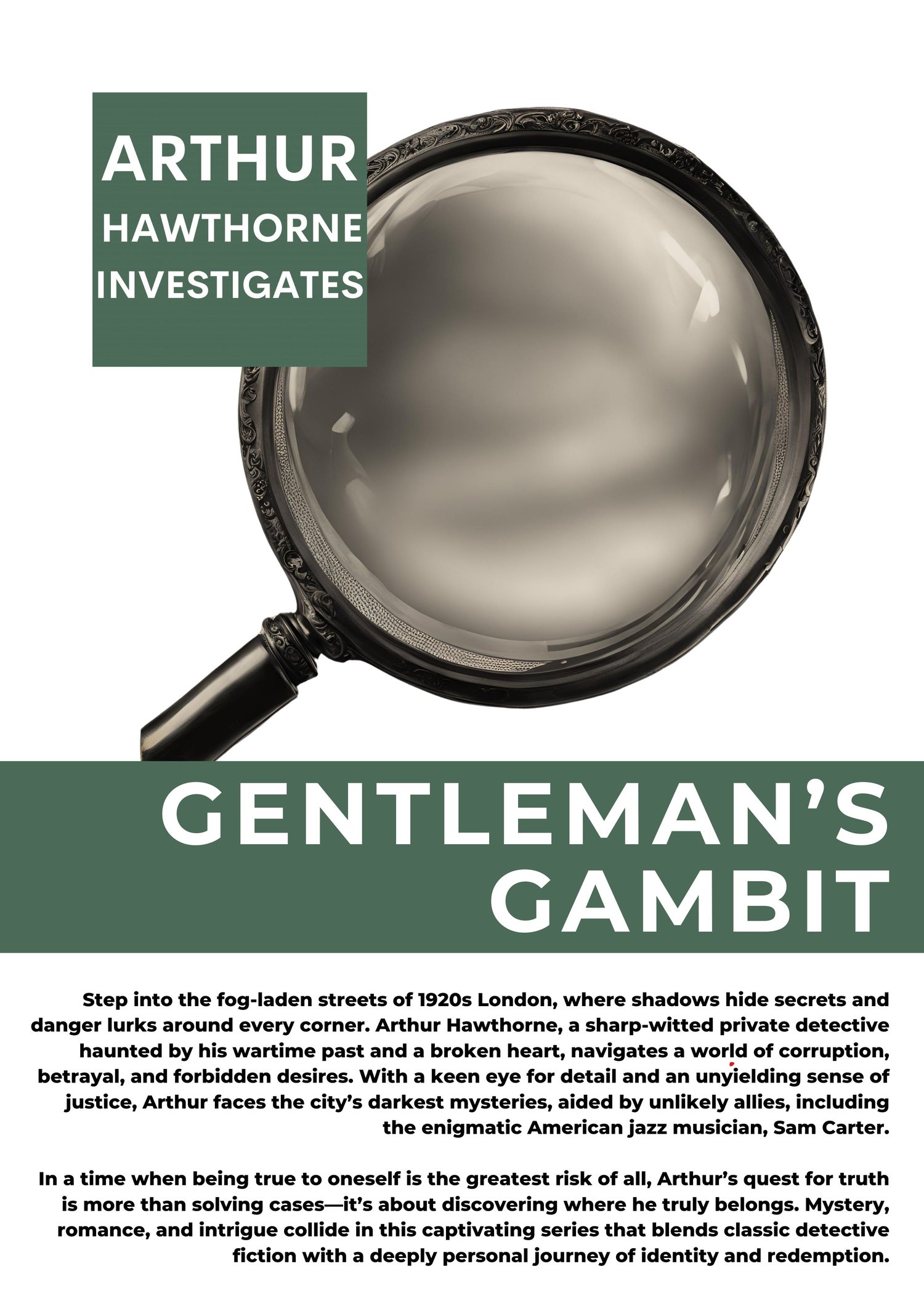 Step into the fog-laden streets of 1920s London, where shadows hide secrets and danger lurks around every corner. Arthur Hawthorne, a sharp-witted private detective haunted by his wartime past and a broken heart, navigates a world of corruption, betrayal, and forbidden desires. With a keen eye for detail and an unyielding sense of justice, Arthur faces the city’s darkest mysteries, aided by unlikely allies, including the enigmatic American jazz musician, Sam Carter.