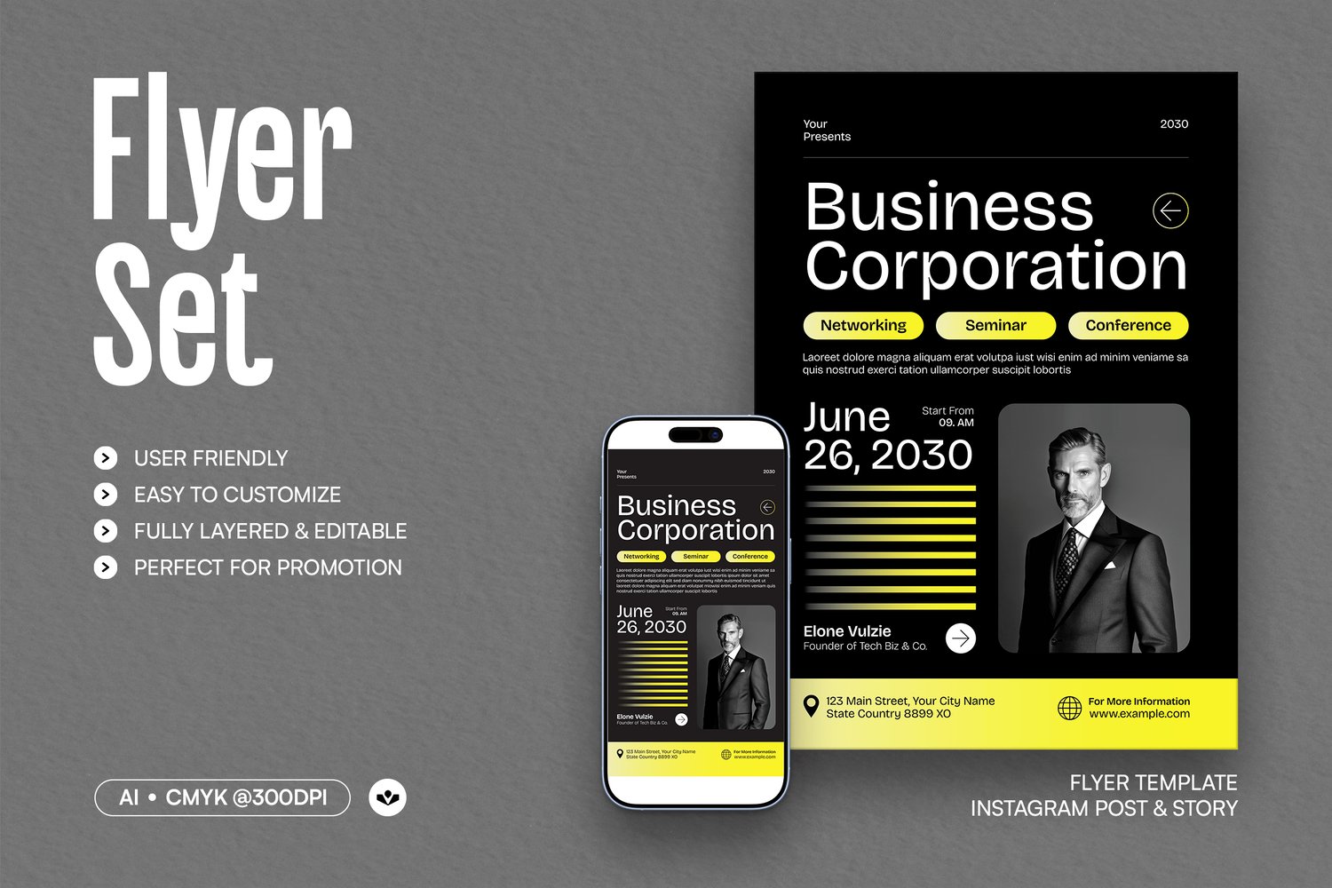 - 03 Artboard Size: FLYER - 8.5x11 inch, INSTAGRAM POST - 1080x1350 px & INSTAGRAM STORY 1080×1920 px;