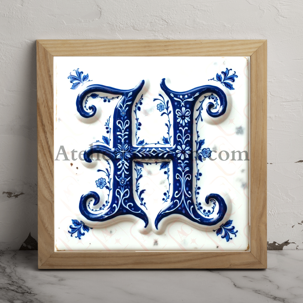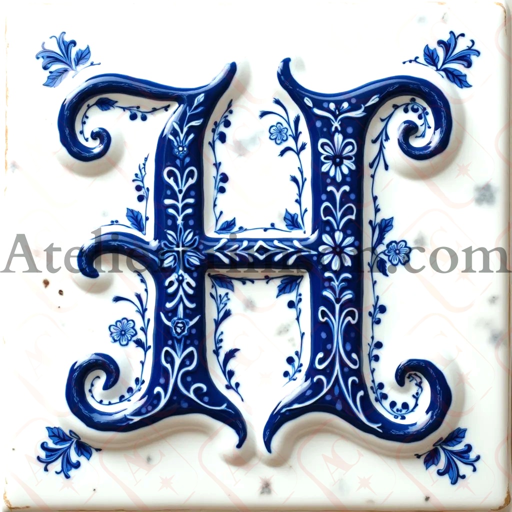 The letter H delftware blue tiles Download Now this high quality AI-generated image, perfect for adding a touch of tranquility and creativity to any space.