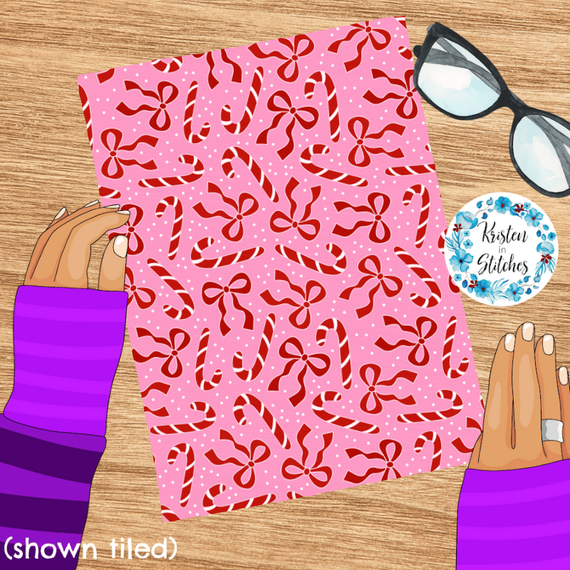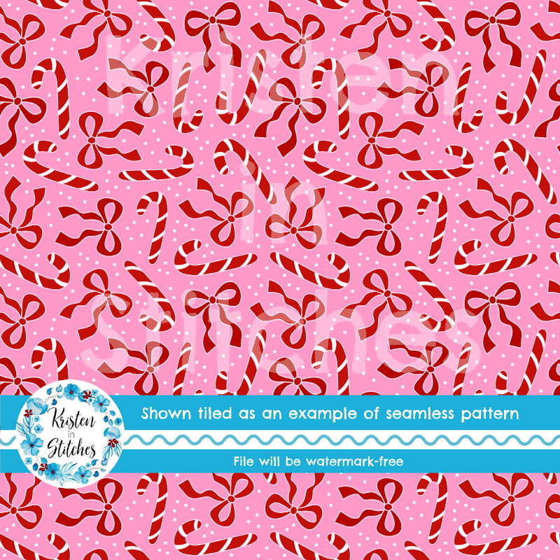 Candy Canes and Bows Winter Christmas Seamless Pattern