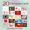 20 Printable Christmas folded Cards set - Christmas greeting cards, hollidays card, print xmas card