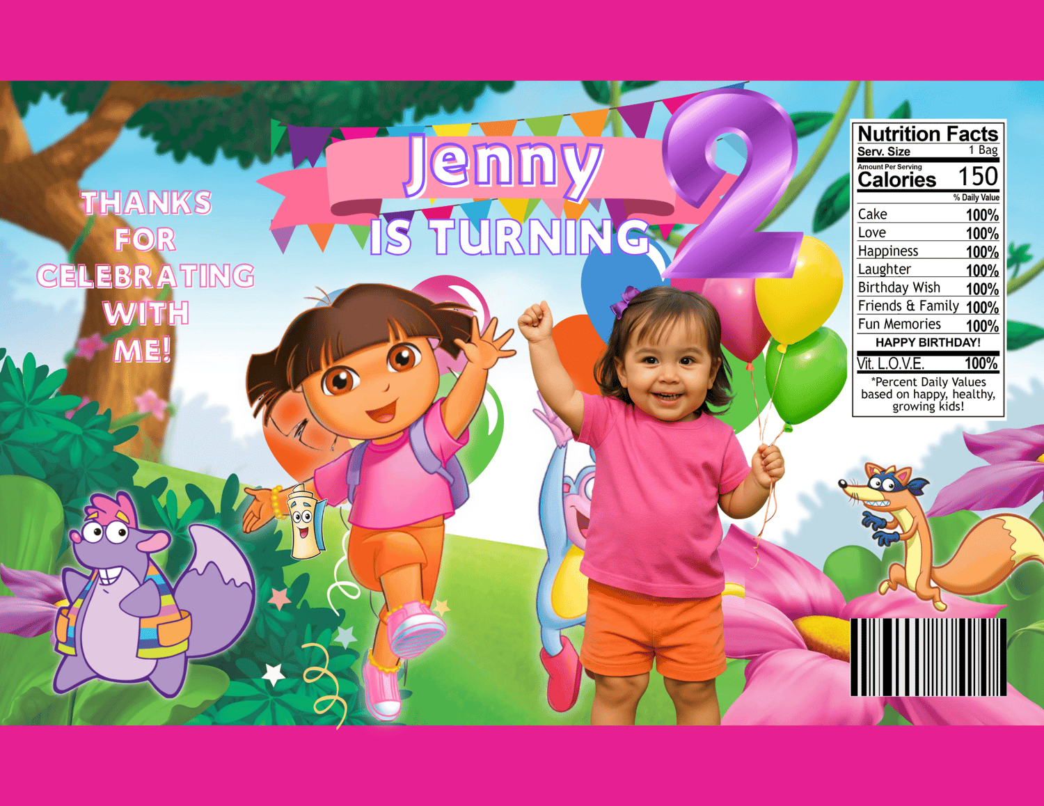 Elevate your child's birthday party with our Dora Party Favor! Editable in Canva, it allows for personalized touches and easy customization. With this product, you can now easily design and print your own party favors, making it a unique and special experience for your little ones and their friends. Save time and hassle, and wow your guests with our Dora Party Favors!