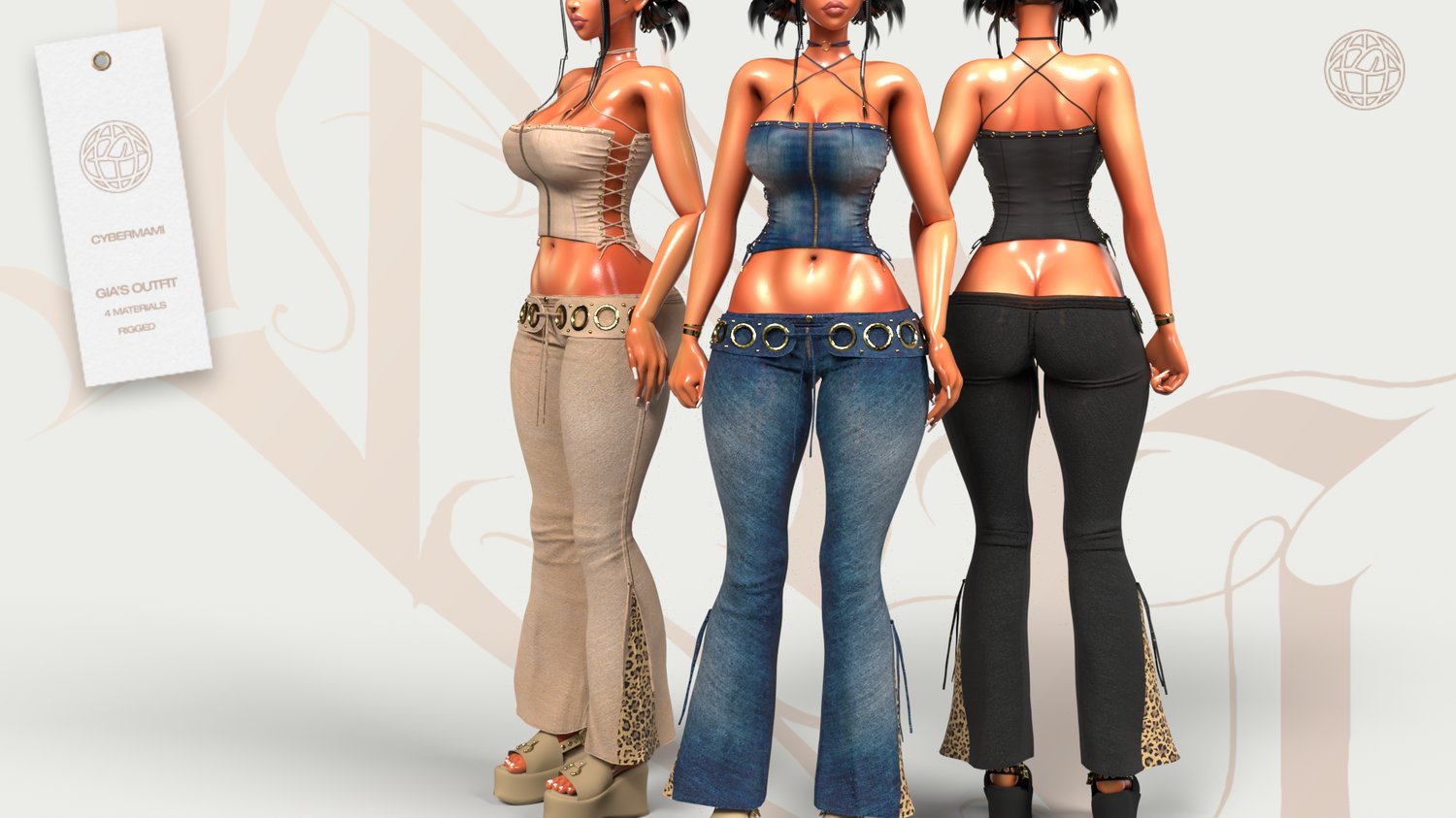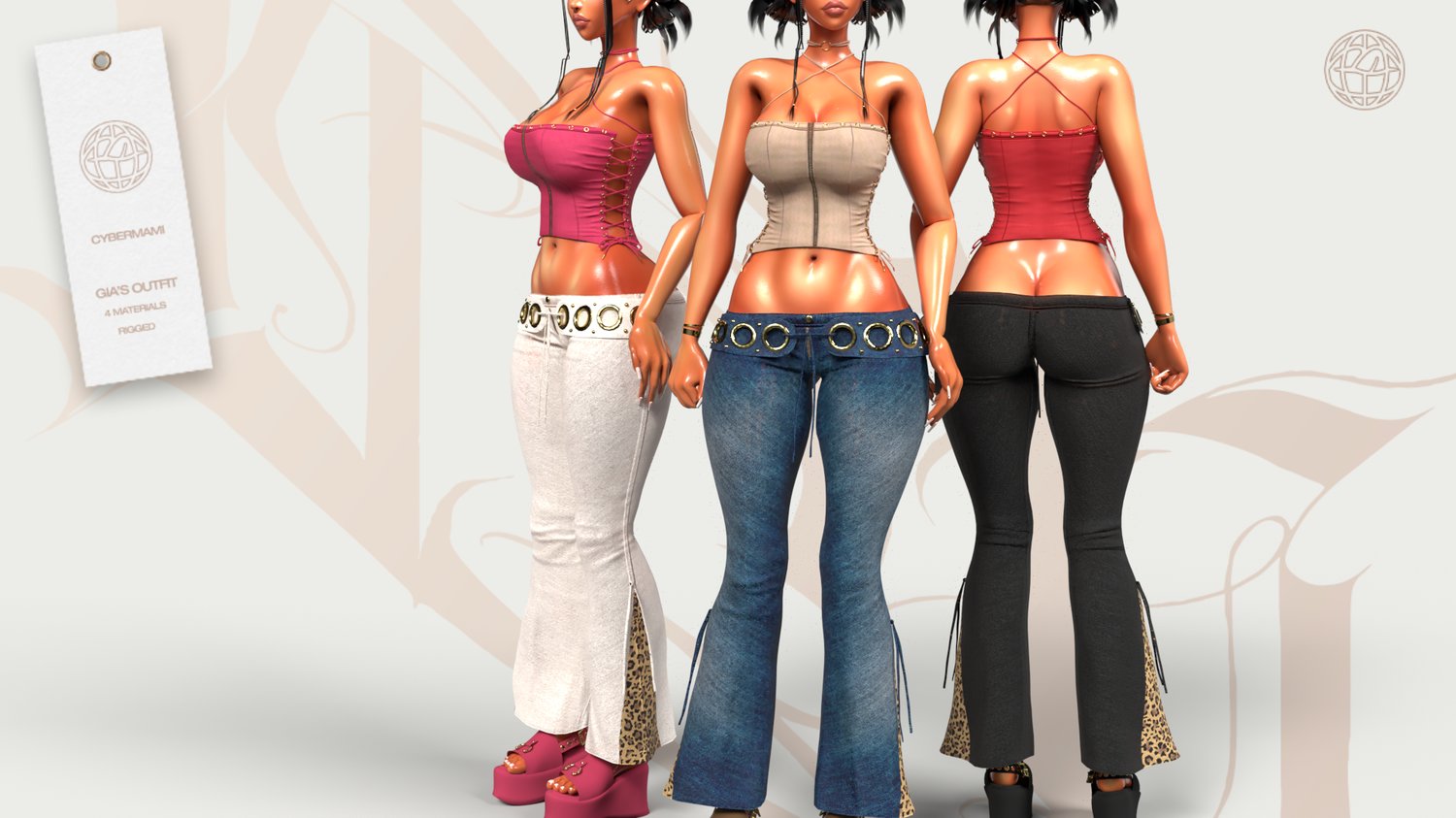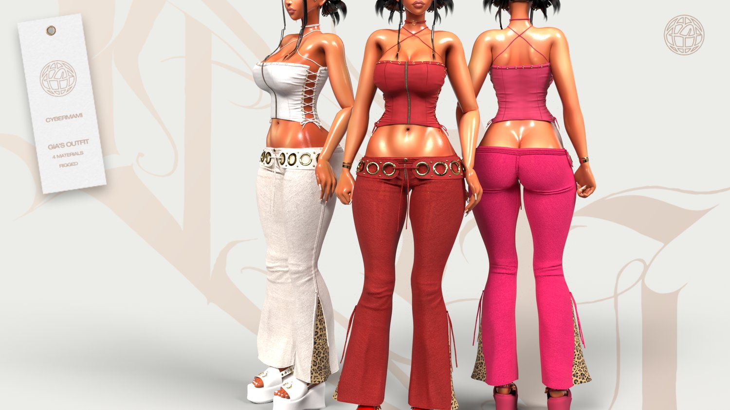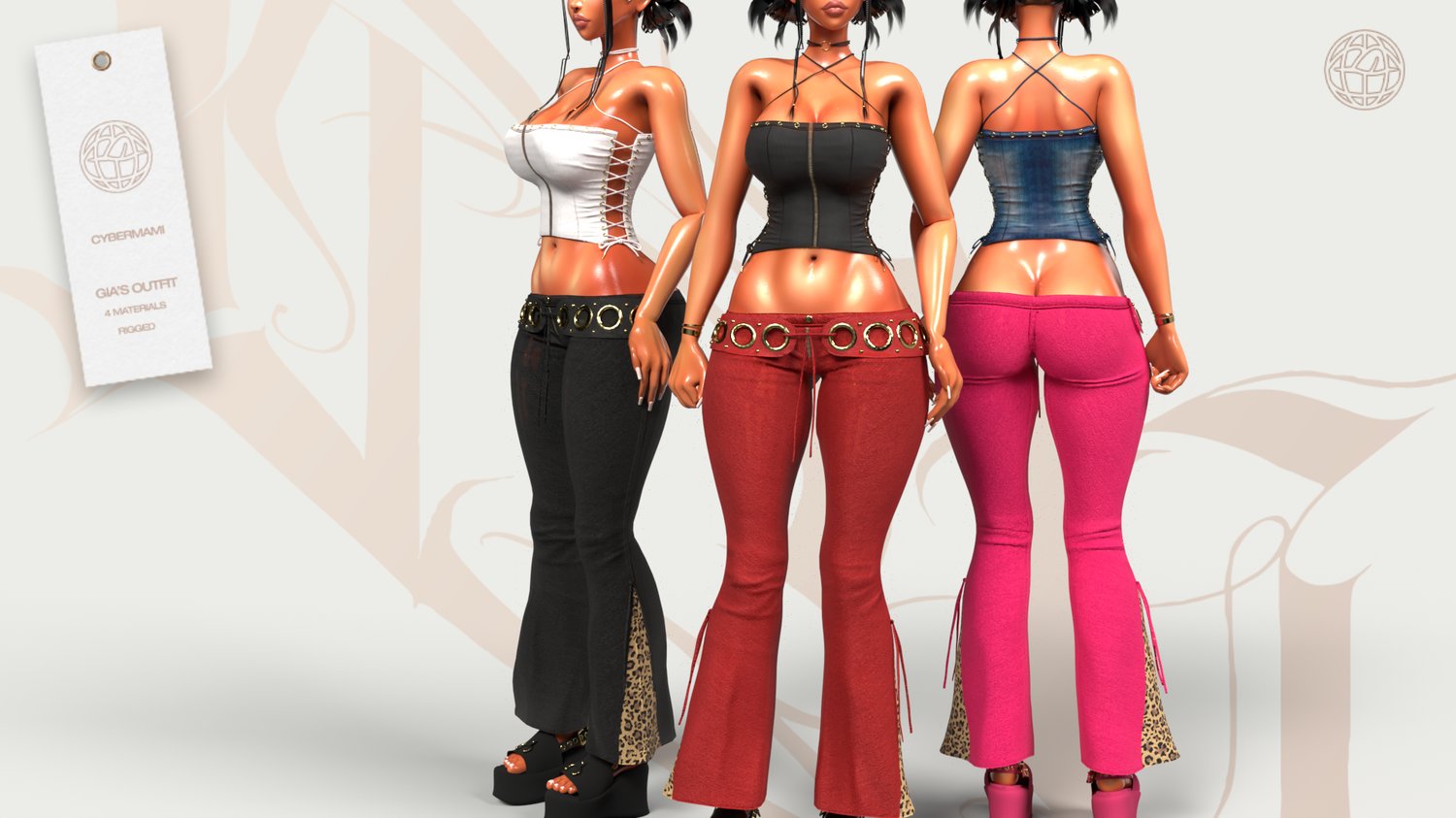♡ 1 Zip file including 1 FBX and 6 matching texture options for both corset and pants. Included options without leopard print on sides of pants for basic wear as well.