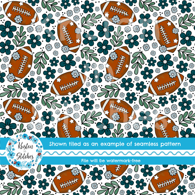 Football Team Spirit Floral Seamless Pattern, Philadelphia Eagles Colors Midnight Green Silver Grey