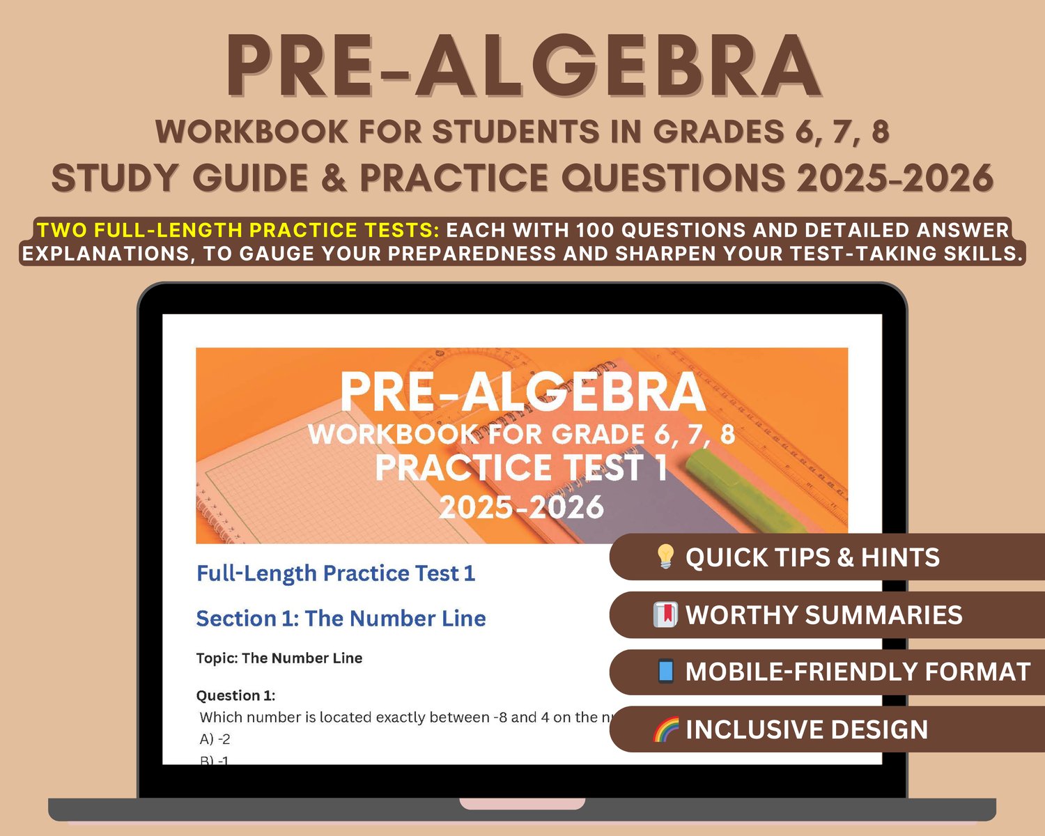 📘 Pre-Algebra Workbook Grade 6, 7, 8 📘
