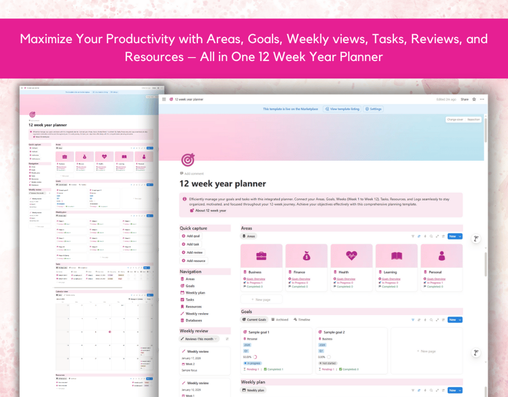 Ready to stop procrastinating and start achieving your biggest goals? The 12 Week Year Planner Notion Template is your all-in-one system for making massive progress in just 90 days. This isn't just a planner; it's a powerful framework designed to keep you focused, motivated, and accountable.