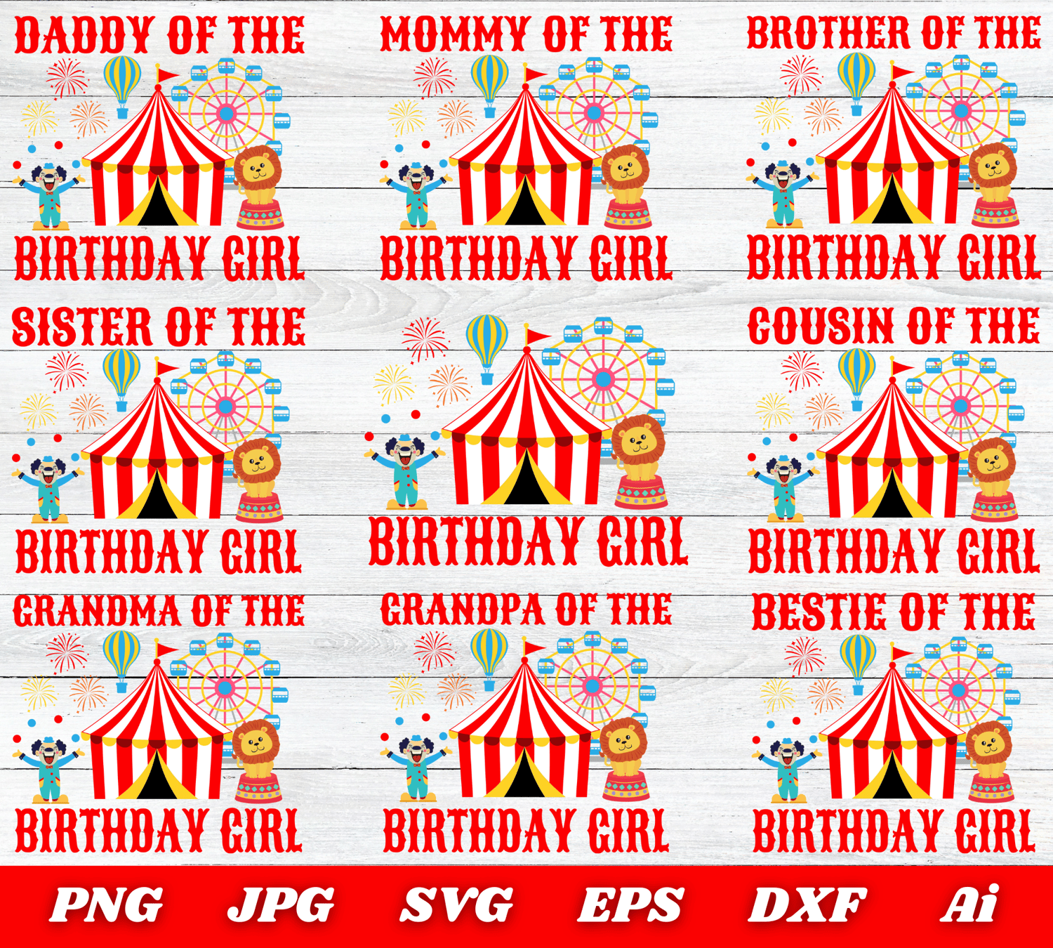 Circus Birthday Girl PNG Bundle, DIY Carnival Birthday Shirt, Matching shirts, Family Circus Birthday Tees, Birthday Party PNG, Circus theme