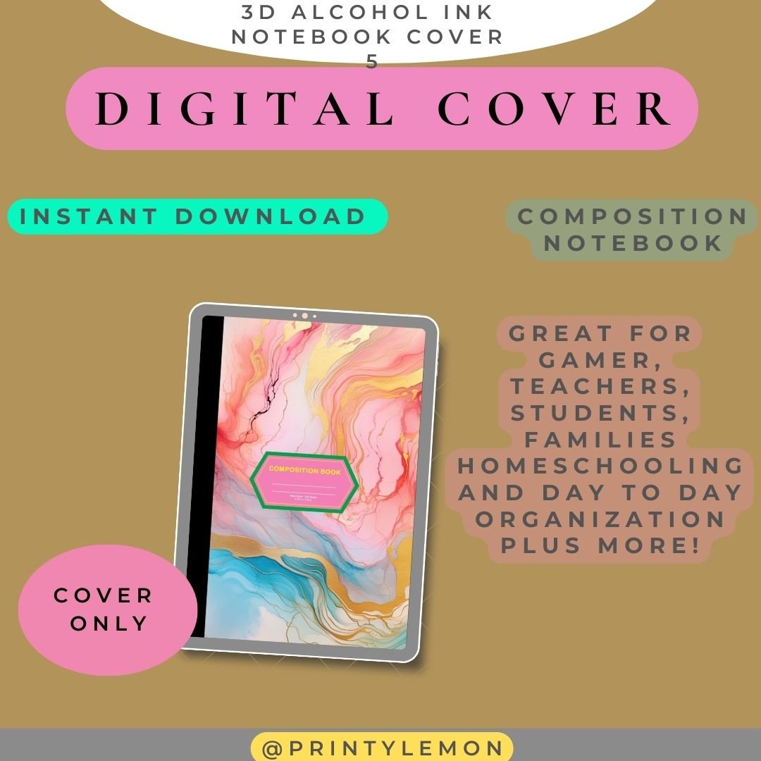 5 Alcohol Ink 3D | Digital Cover Premium | Notebook Cover | GoodNotes | Composition Notebook | Printable