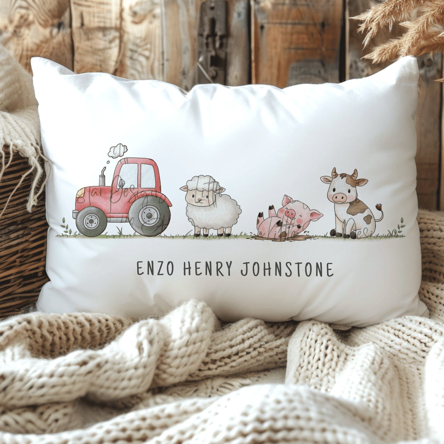 ⭐️ Inky Watercolour illustration featuring a farm scene with pig, cow, sheep and red tractor(1 PNG)