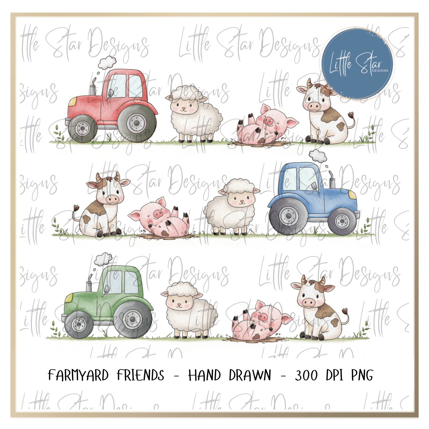This is a high-quality hand drawn (300dpi PNG) digital download of my original artwork, titled ''Farmyard Friends'', designed for sublimation and print.
