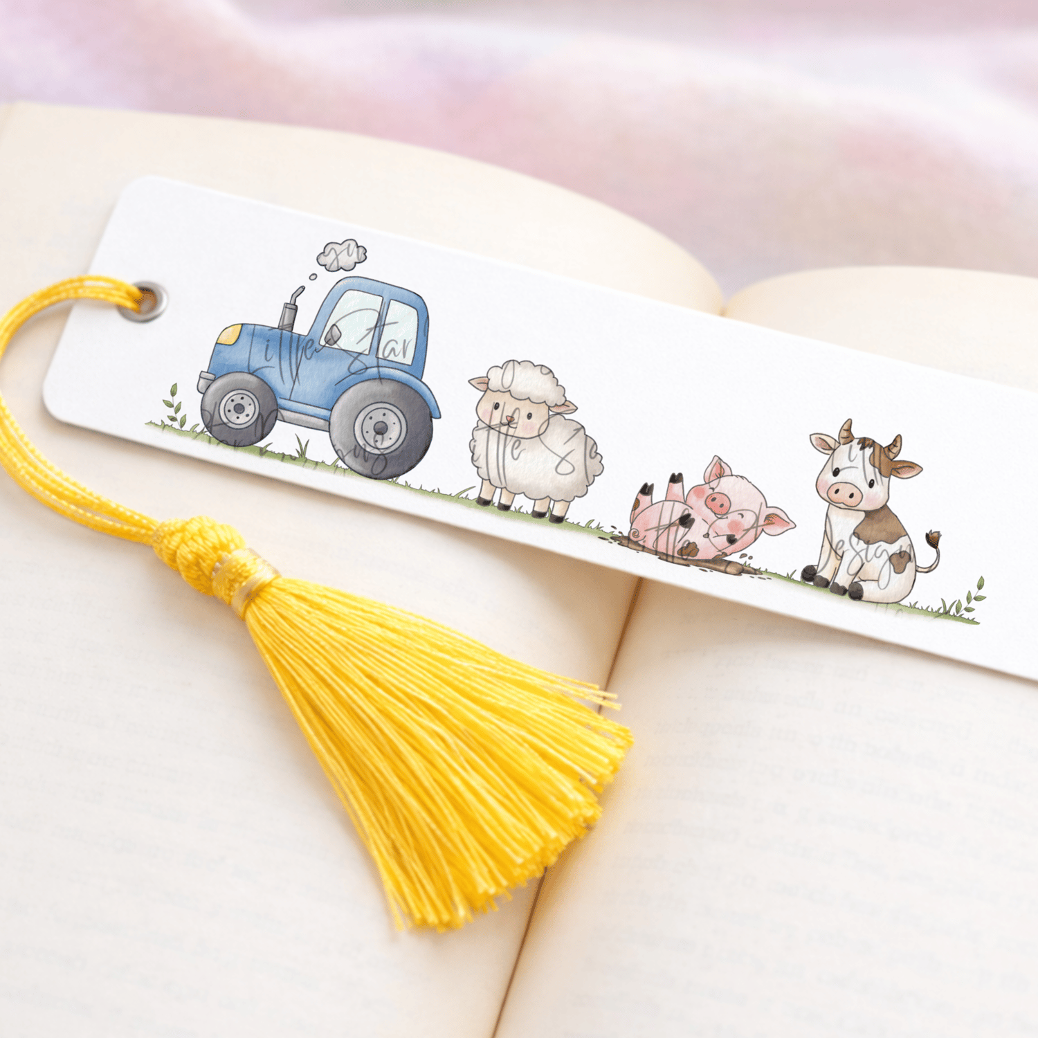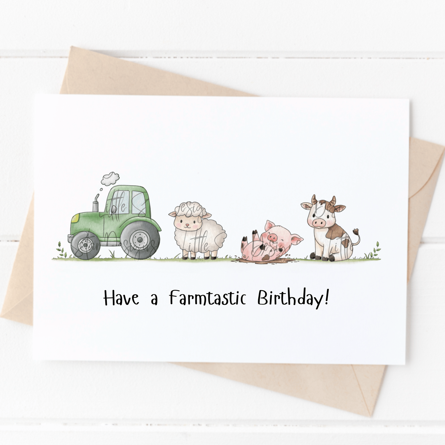 ⭐️ Inky Watercolour illustration featuring a farm scene with pig, cow, sheep and green tractor(1 PNG)