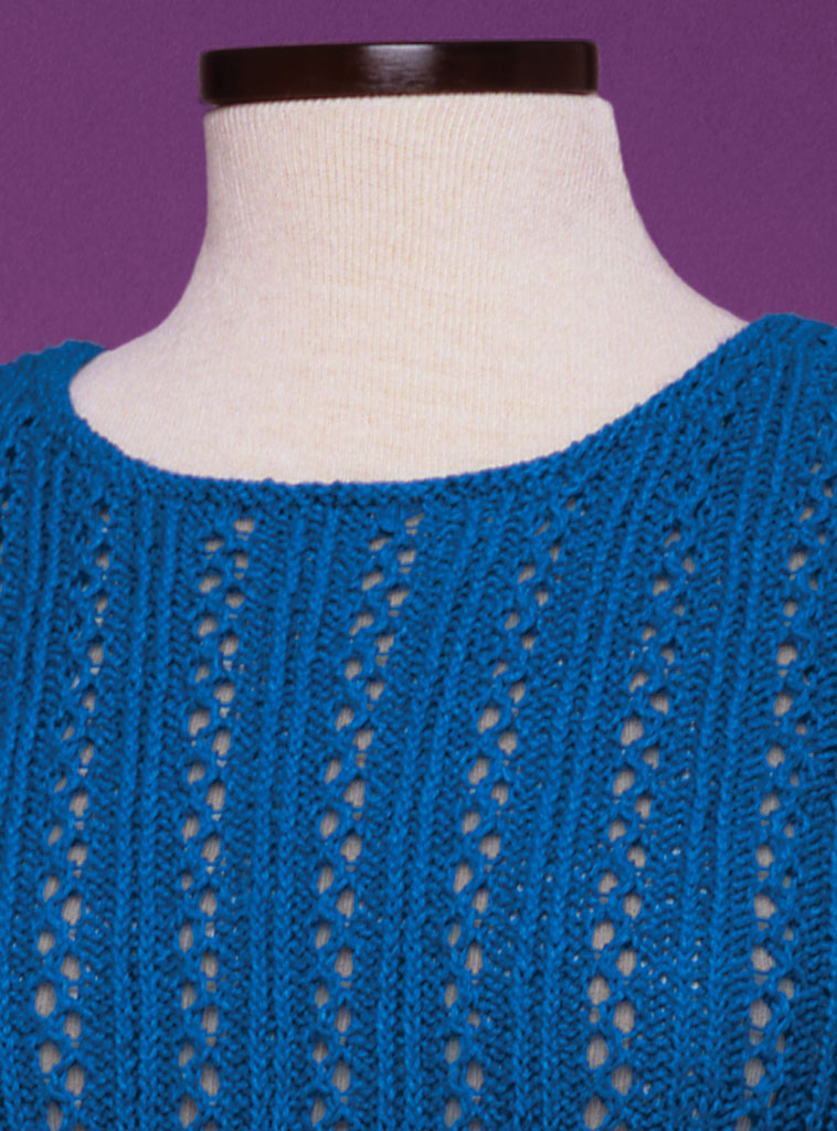 This pullover is worked from the bottom up in pieces, then sewn together.