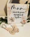 Mother's Day 12cm plaque on stand x 2 with butterfly and strip fob keyrings (woodform)
