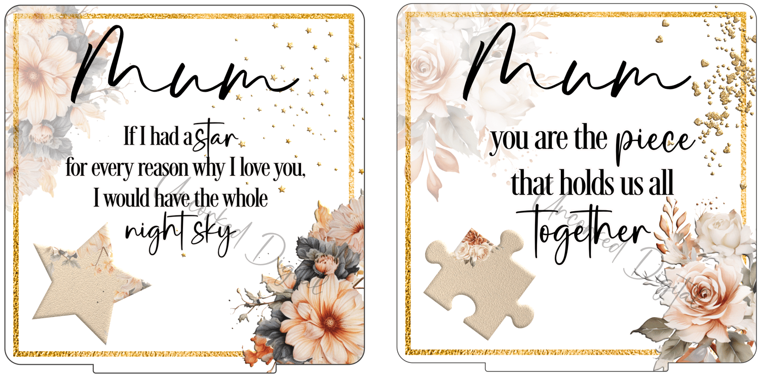 "If I had a star" and "you are the piece" Mother's Day designs to fit the blank 12cm square plaques on stands from Woodform Crafts - Product - WC2274.