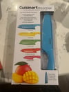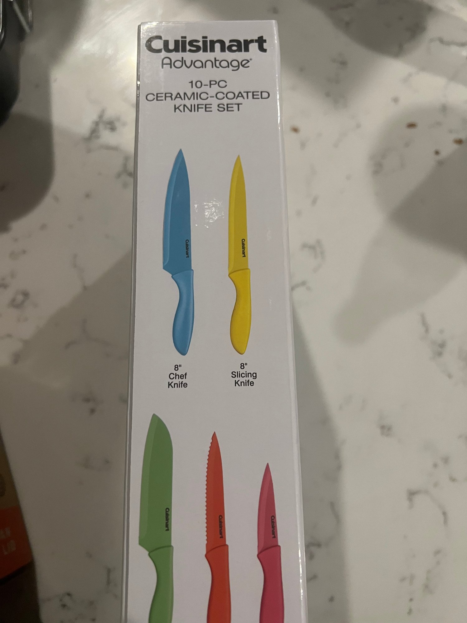 - Includes 8" chef's knife 8" slicing knife 7" Santoku knife 5" serrated utility knife 3.5" paring knife Protective sheaths