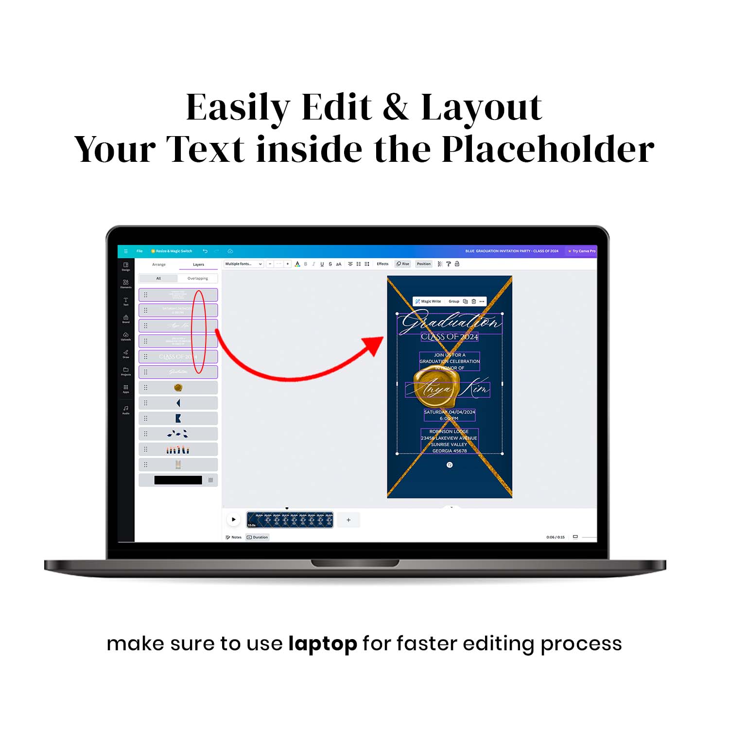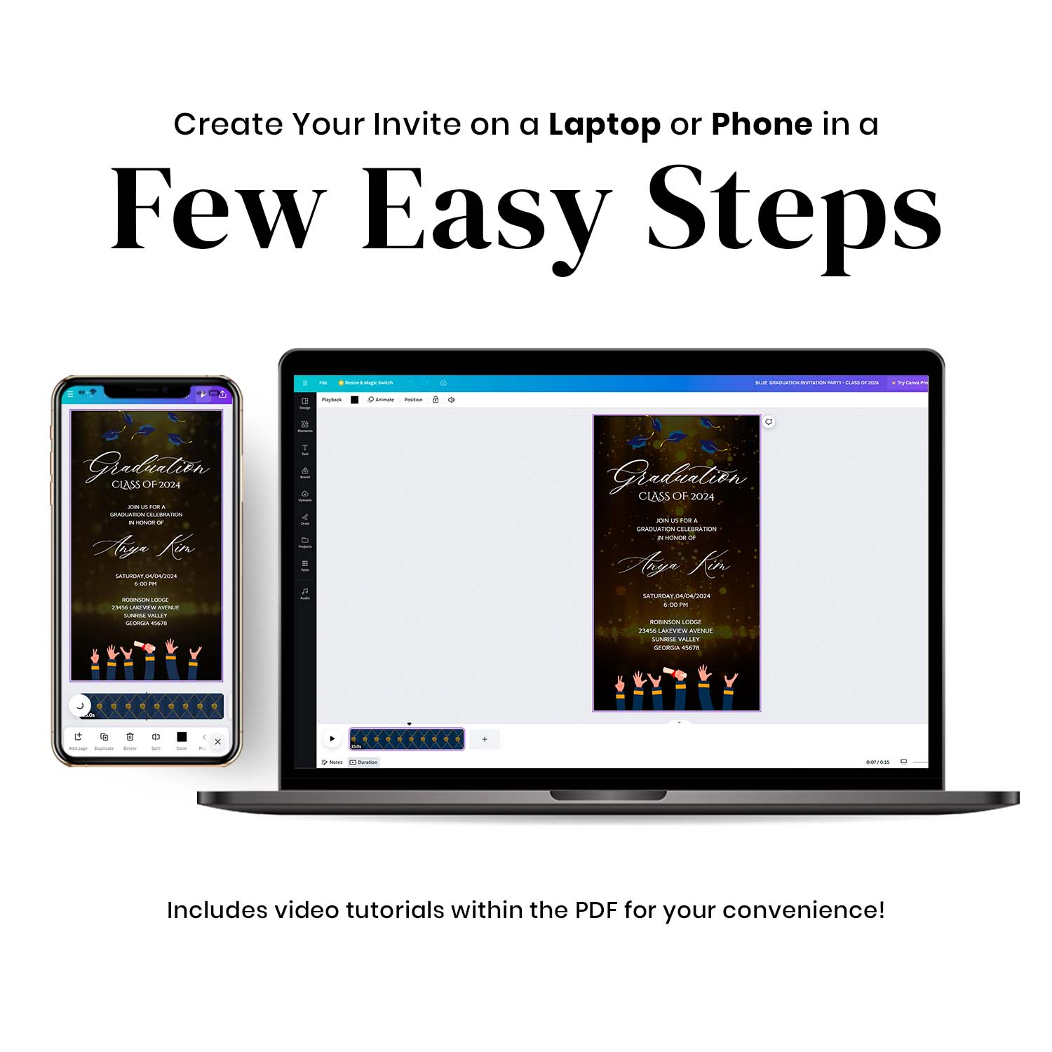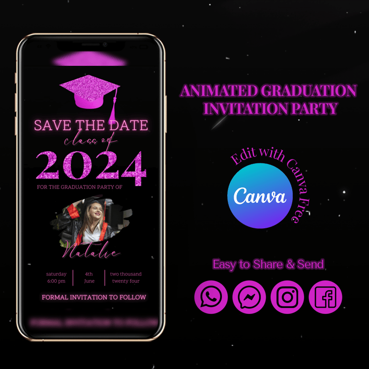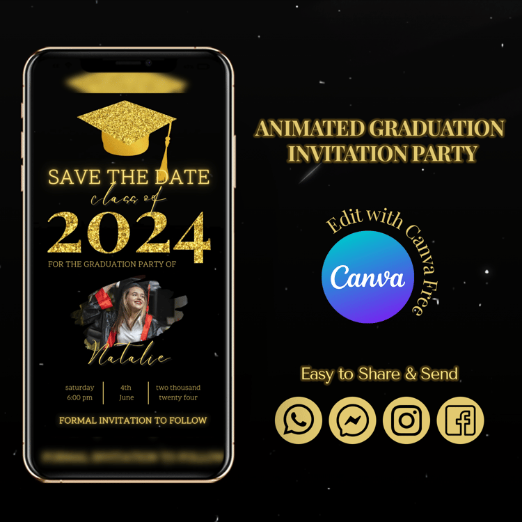 Invite your guests to your graduation event with a unique and modern touch using this special animated graduation party invitation templates. With the convenience of a video text message, it’s quick and easy to send. This template provides instant access without any need for installation.