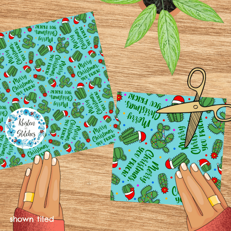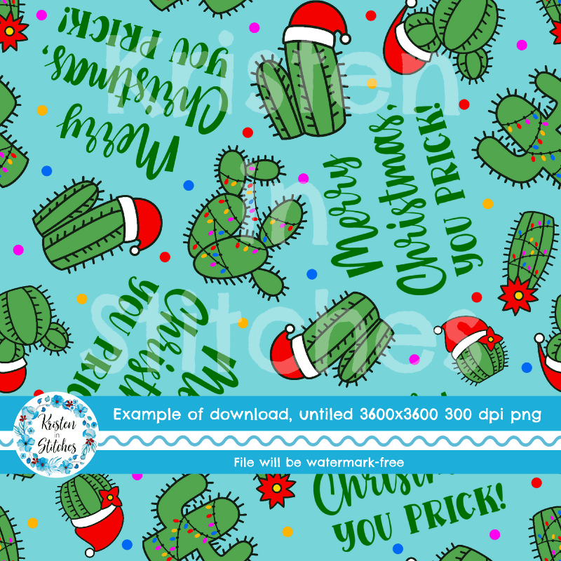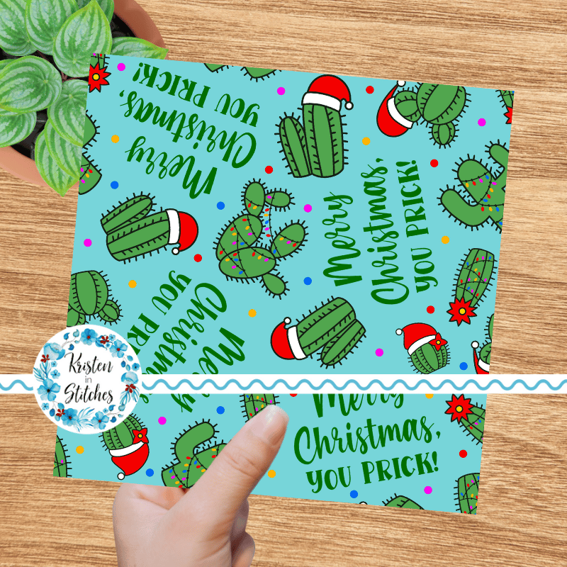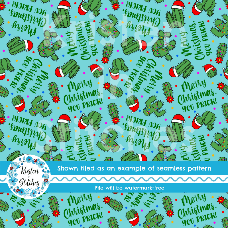 Merry Christmas, You Prick! Seamless Pattern Green Cactus Santa Hats