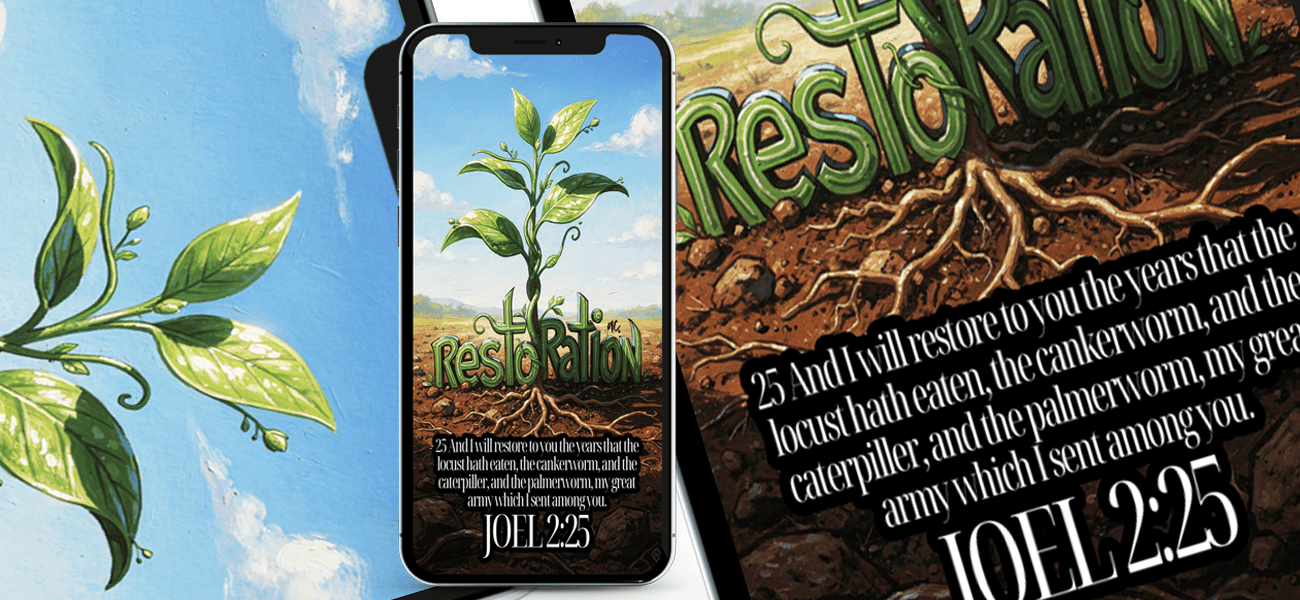 Bring God’s promise of renewal right to your lock screen. This beautifully designed digital phone screensaver features Joel 2:25 (KJV) — “And I will restore to you the years that the locust hath eaten…” — a powerful reminder that nothing lost is beyond God’s ability to restore.