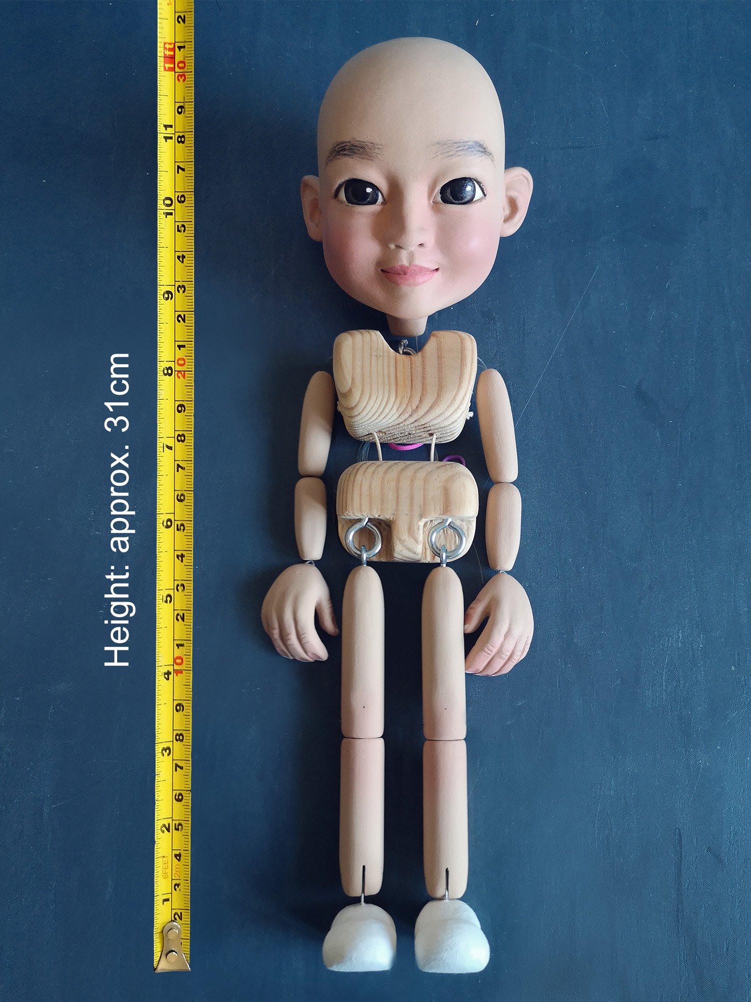 Approx. height of the marionette: 31.5 cm / 12.5 inches (top of head to bottom of feet)