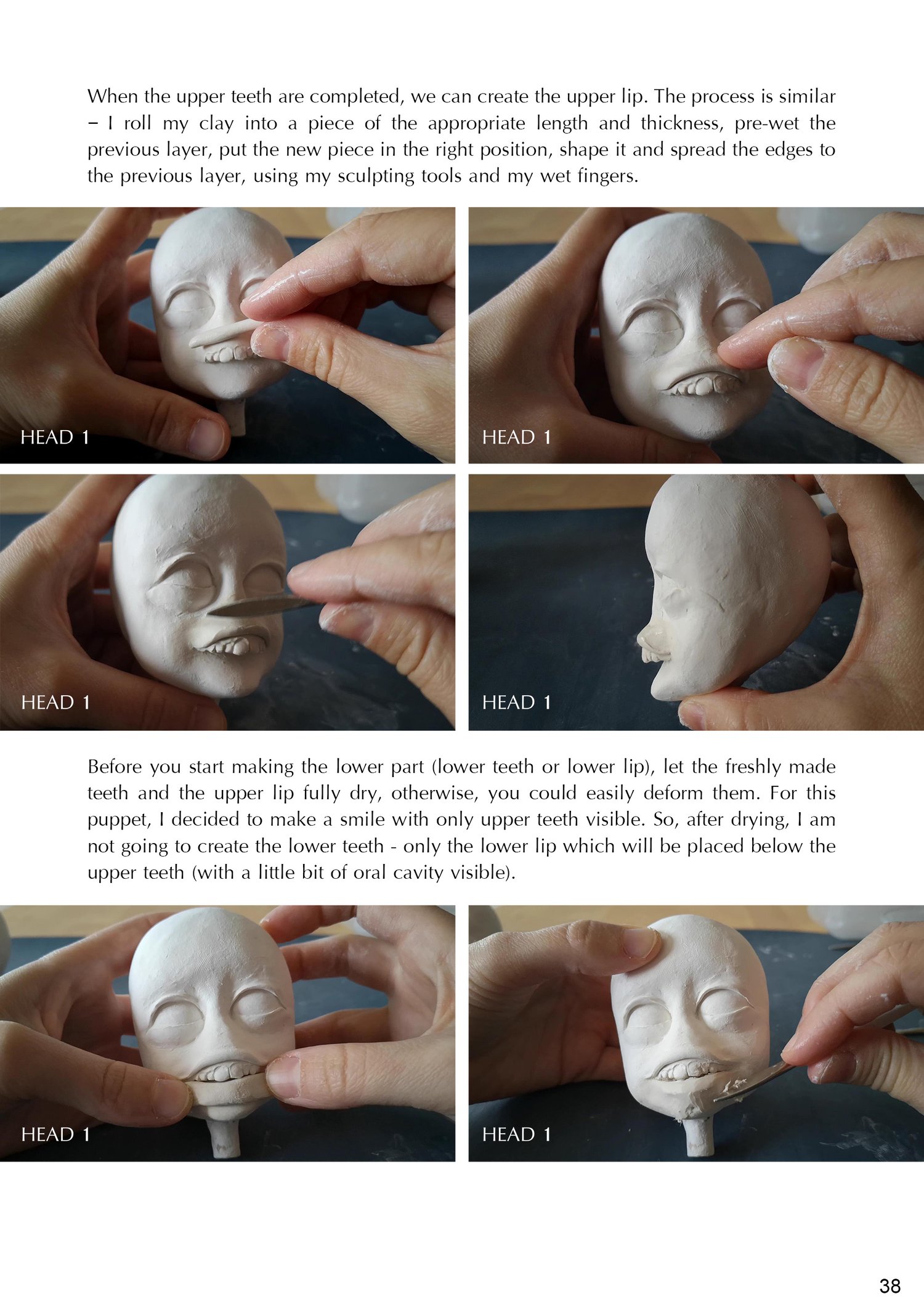 In this digital book / tutorial I'll guide you through the entire process of making your own marionette. Step by step, you'll learn how to create all body parts of the puppet, including the controller. You'll also learn how to assemble all the pieces together and, of course, how to control your marionette. I’ll show you the process of sculpting two different faces – one with a closed mouth and one with a wide smile (so you can also see how I sculpt teeth). This PDF file also contains video links, because I truly believe that seeing the process in motion is a perfect addition to written and photo instructions. Included are also five pages of technical drawings you can print out. The e-book is in English.