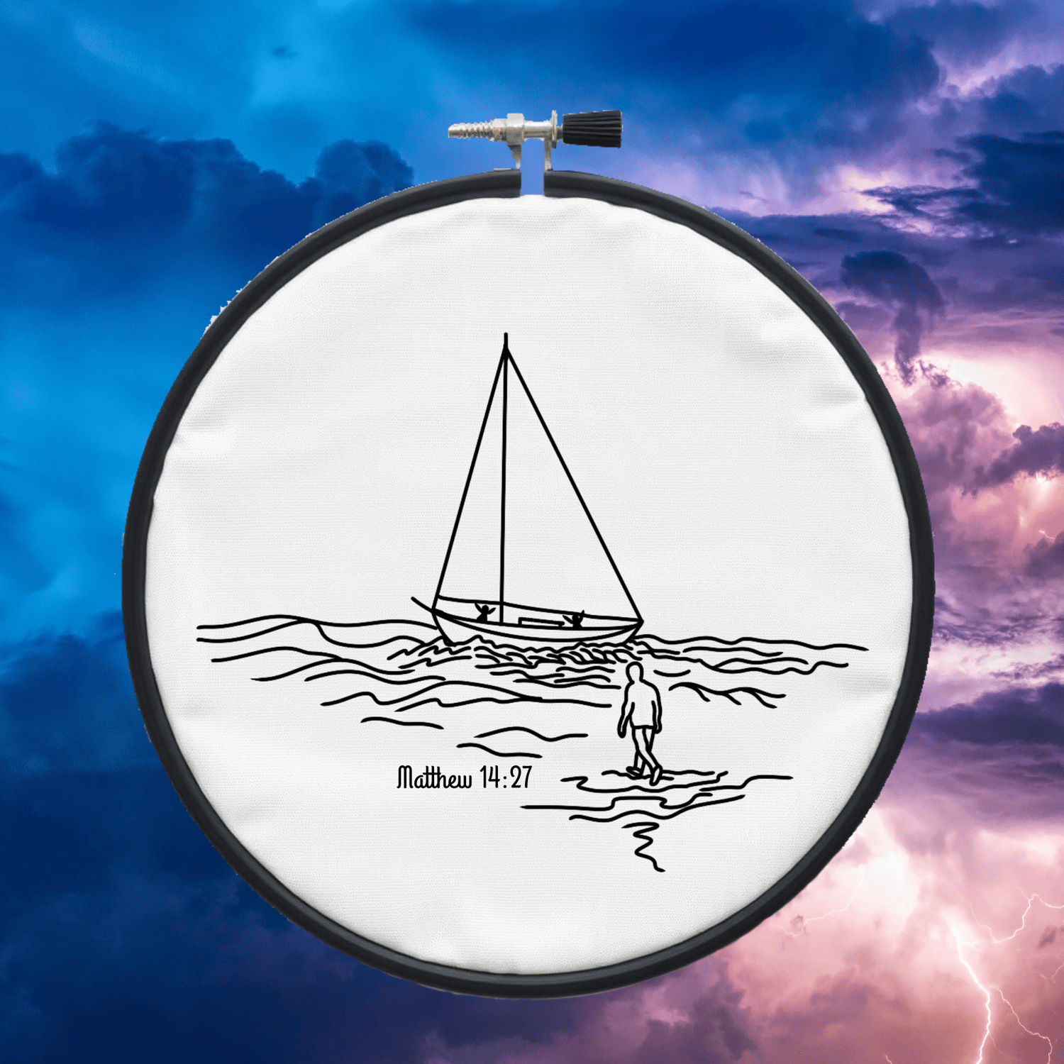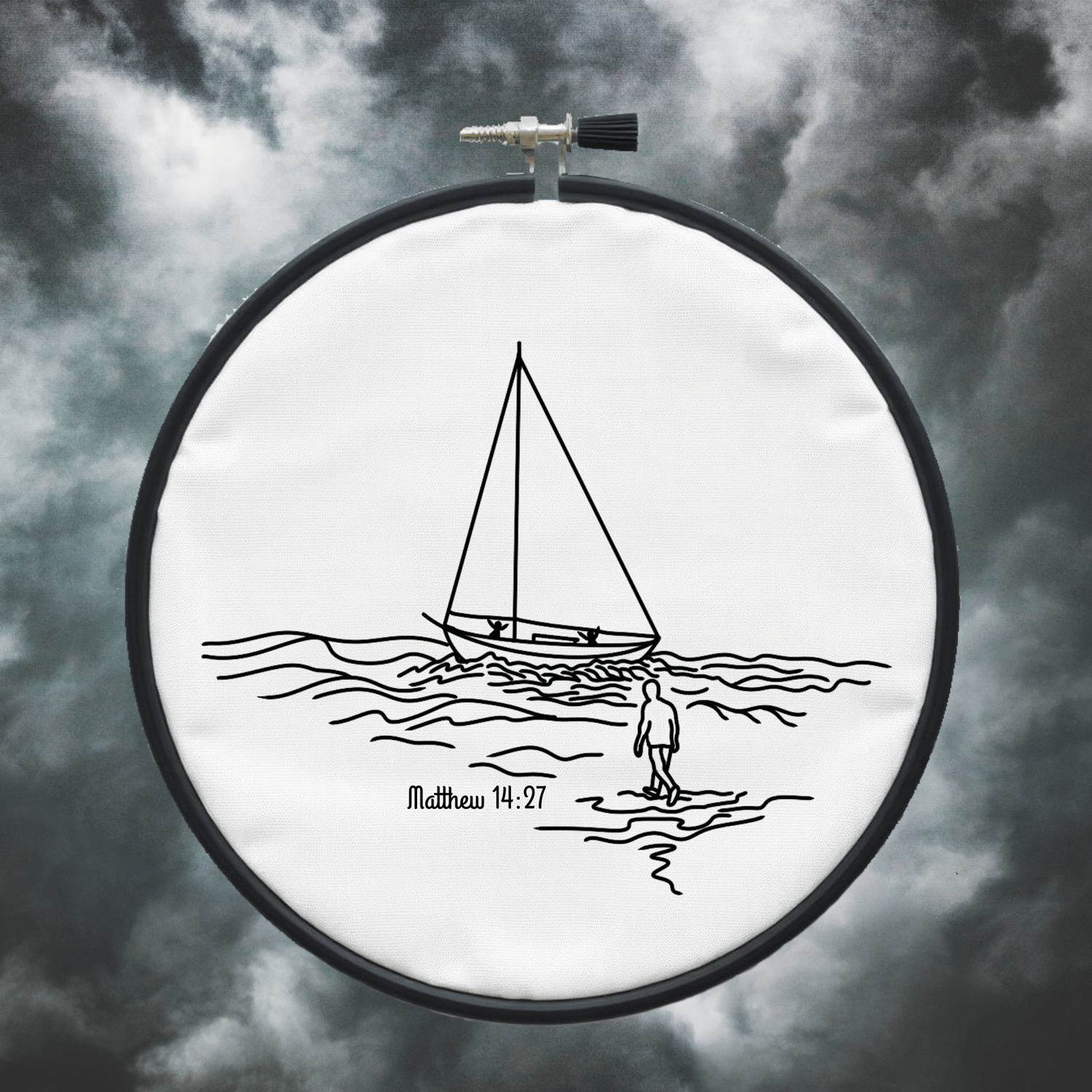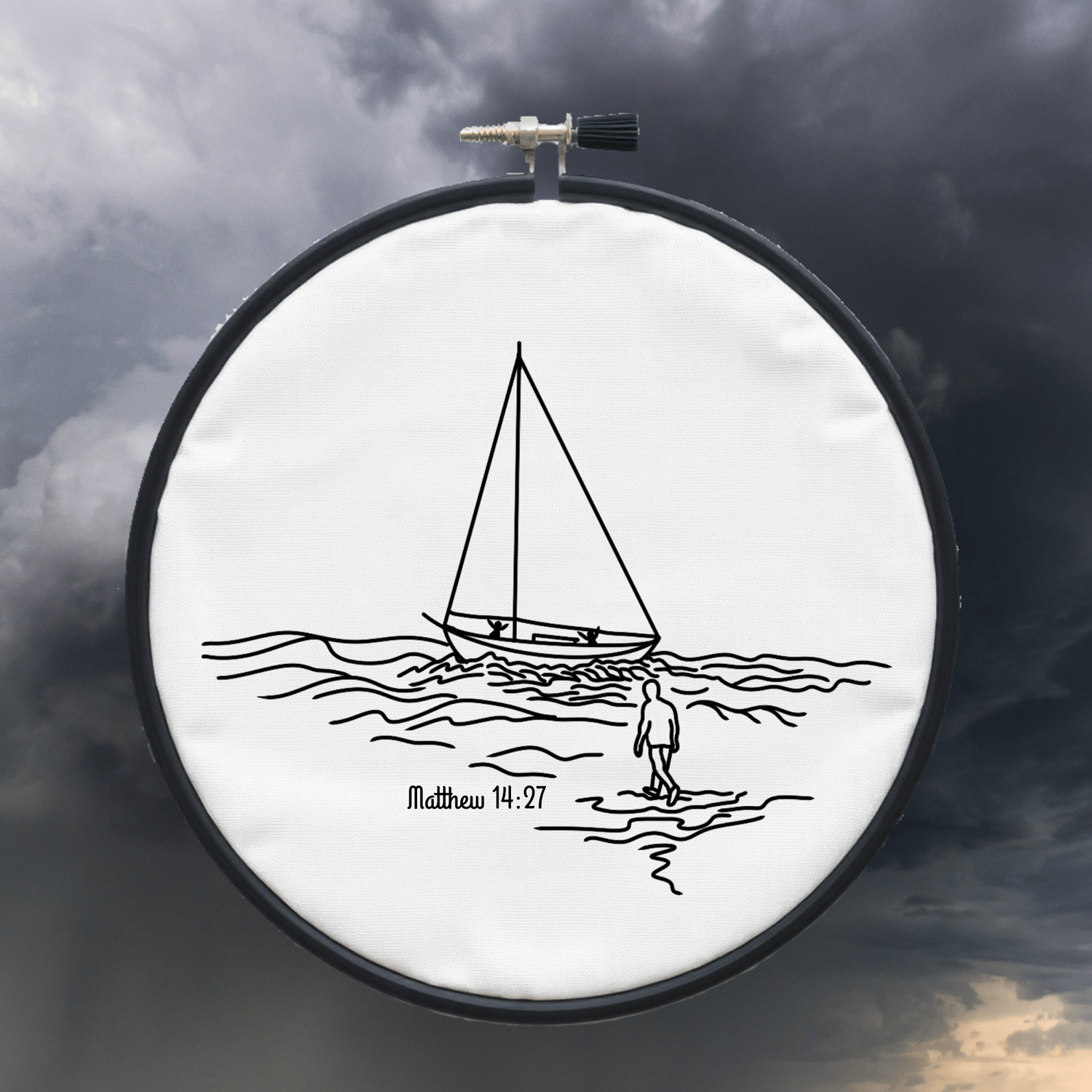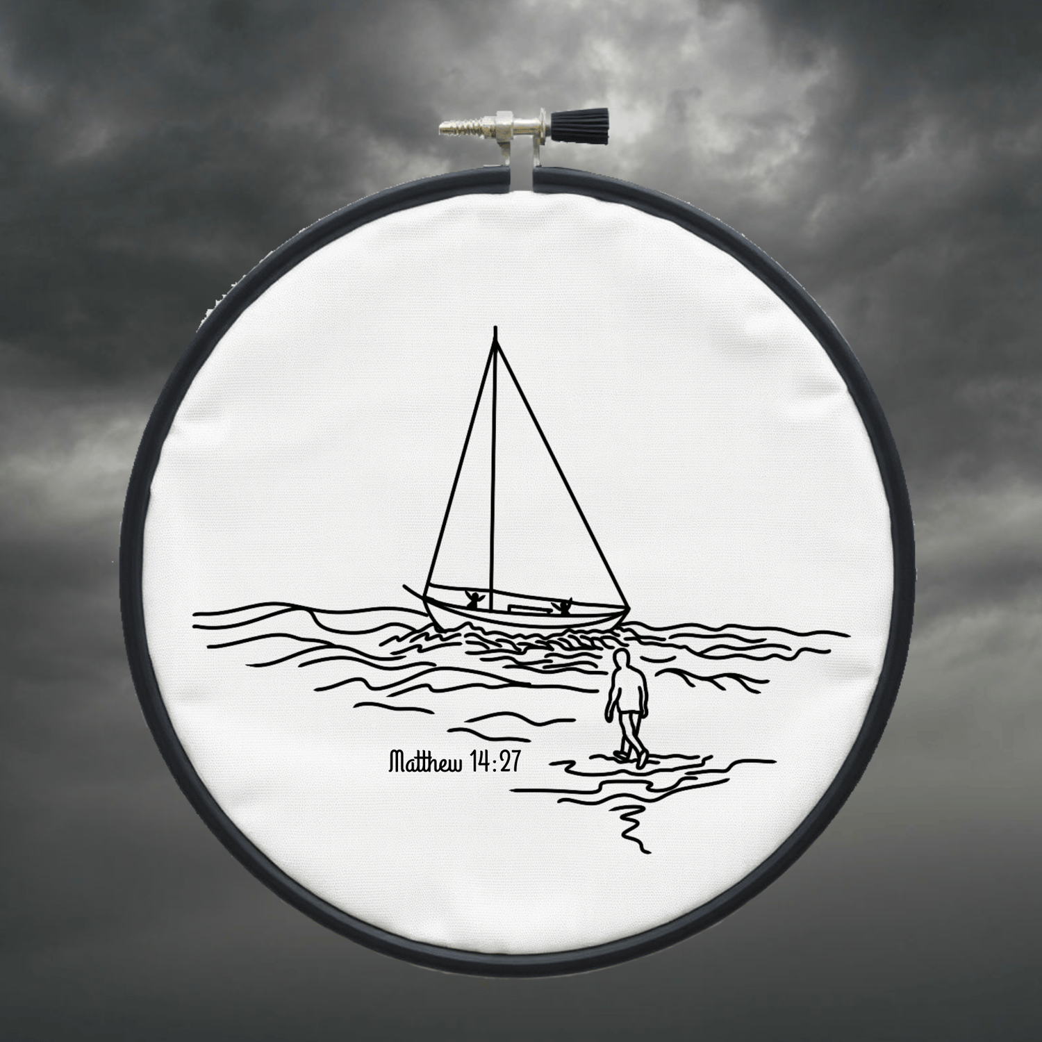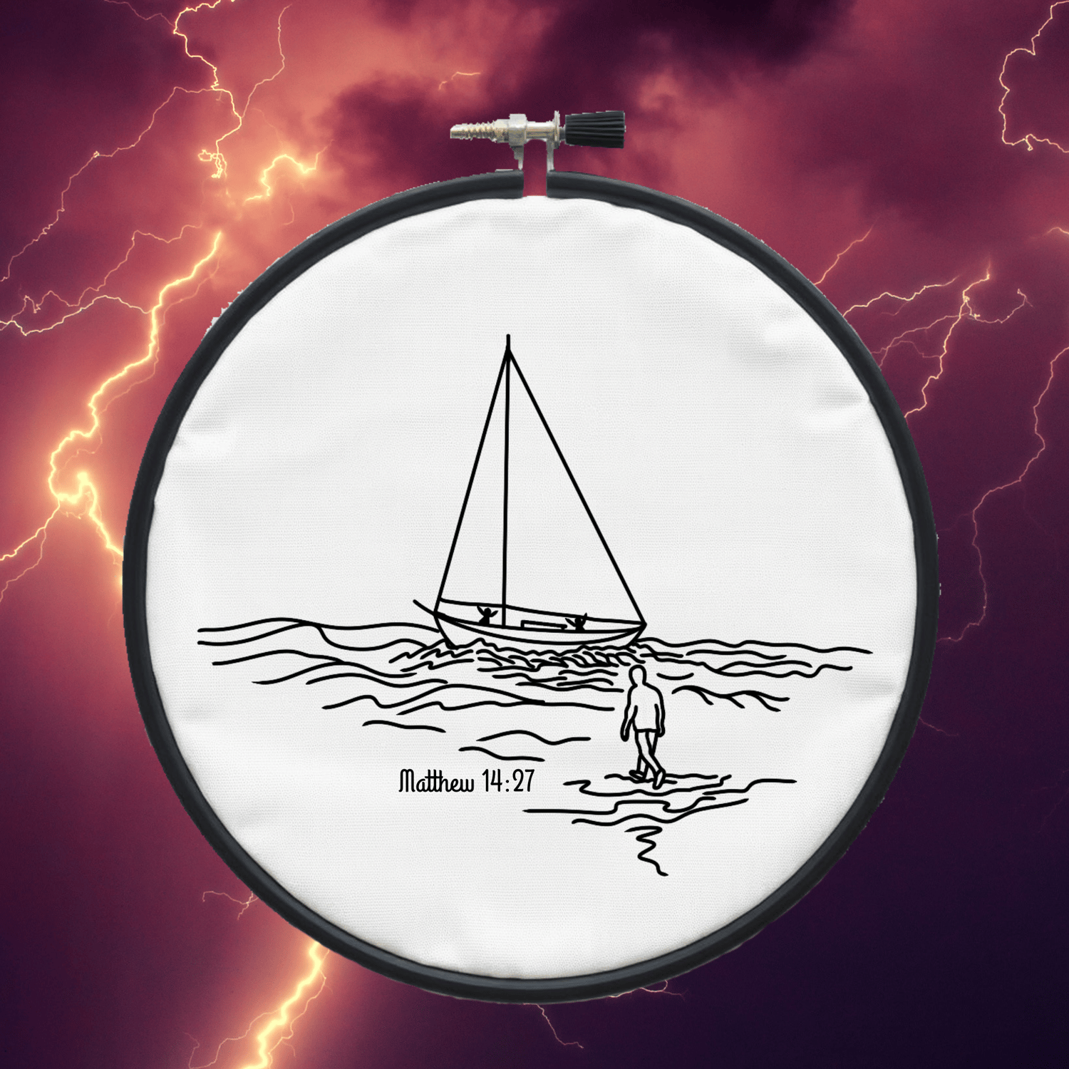 Walk On Water Embroidery Template PDF - DIY Scripture Design For Hand Stitching - Instant Download