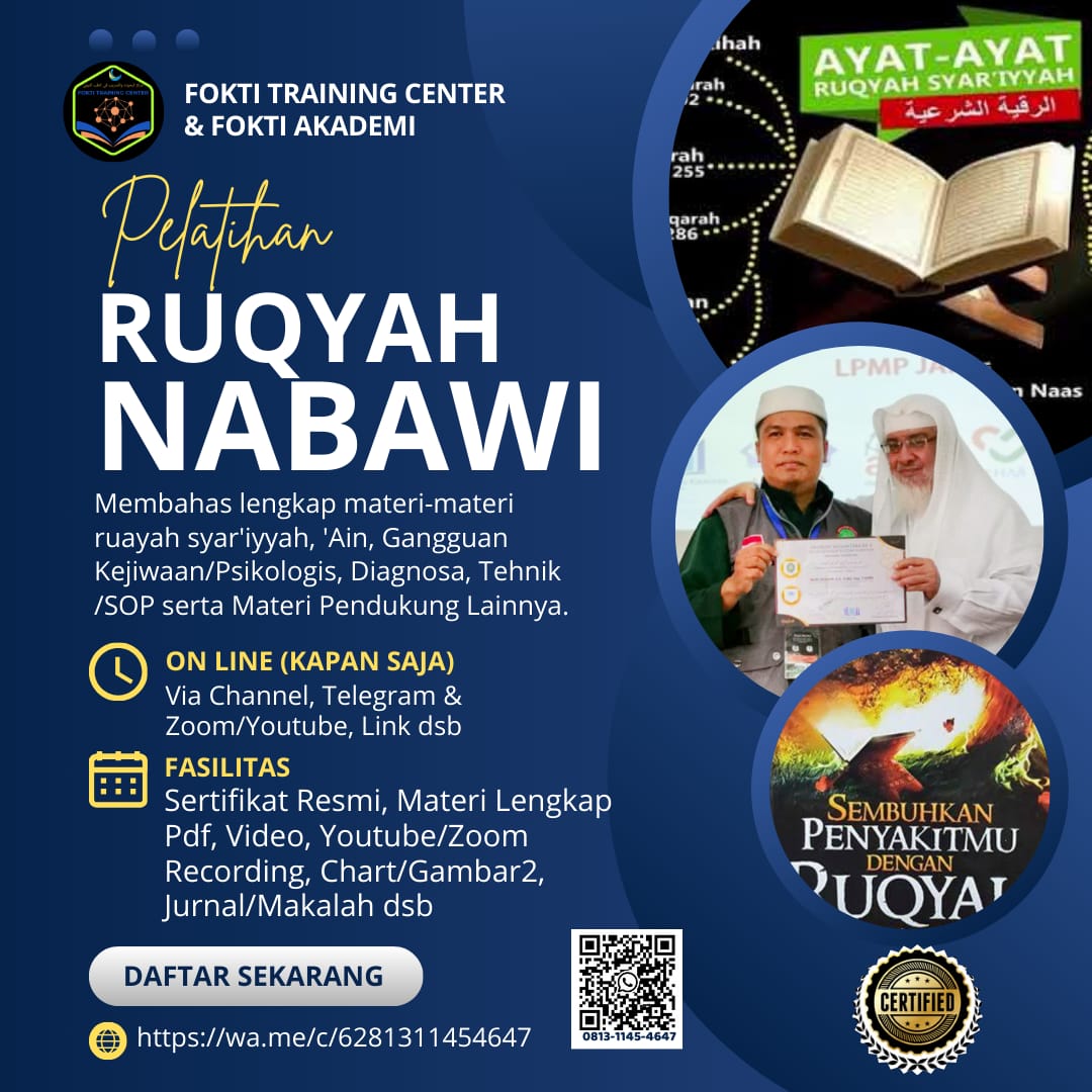 RUQYAH NABAWI MERUPAKAN METODE RUQYAH SECARA SYAR'I DENGAN KAIDAH-KAIDAH ATH-THIBB AN-NABAWI BERDASARKAN AL-QUR'AN DAN HADIST SERTA KETERANGAN DARI PARA 'ULAMA PRAKTISI RUQYAH
