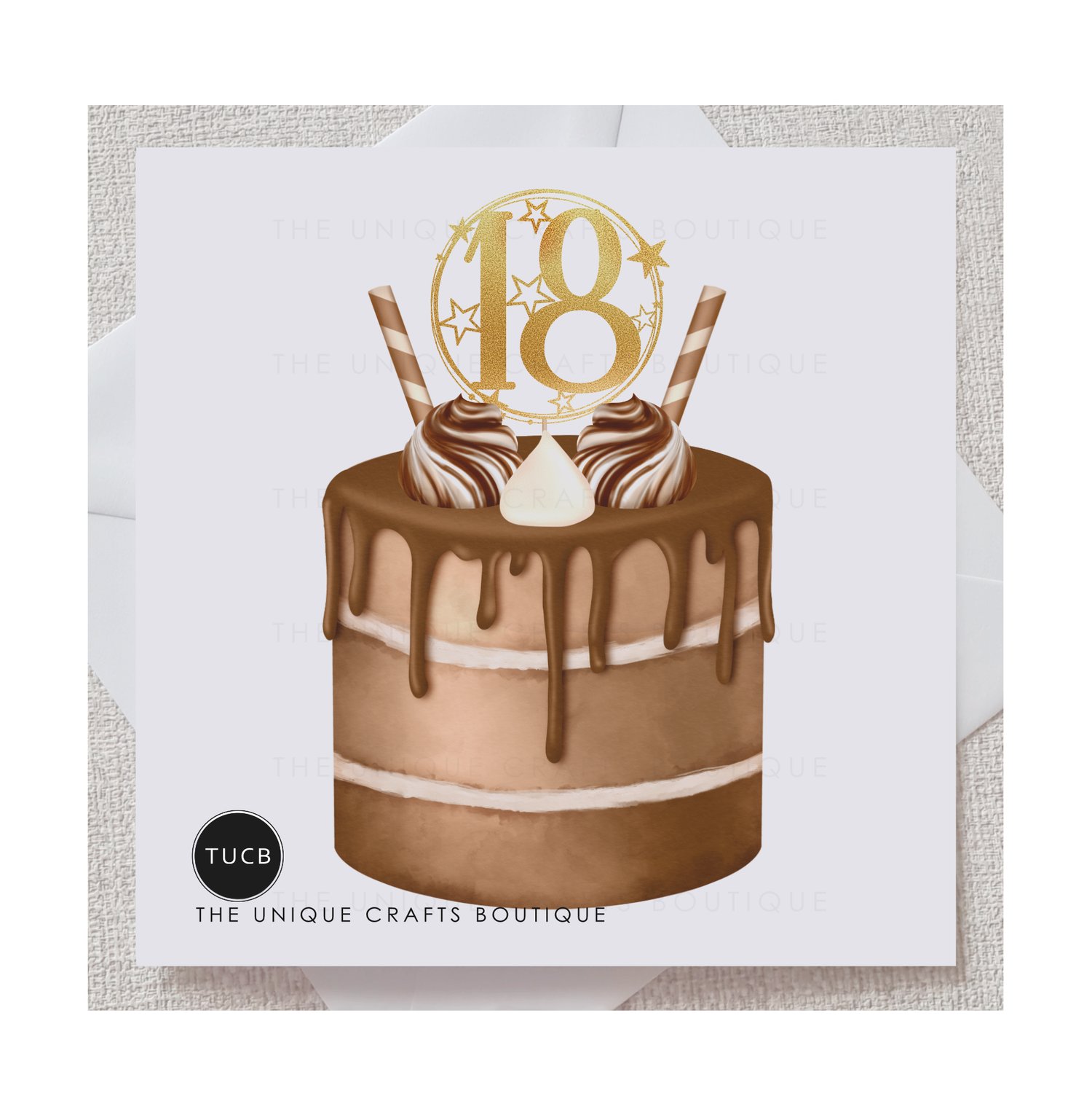Printed with a cute Chocolate cake design with a gold glitter effect cake topper. This card is a certain to make your loved one smile.