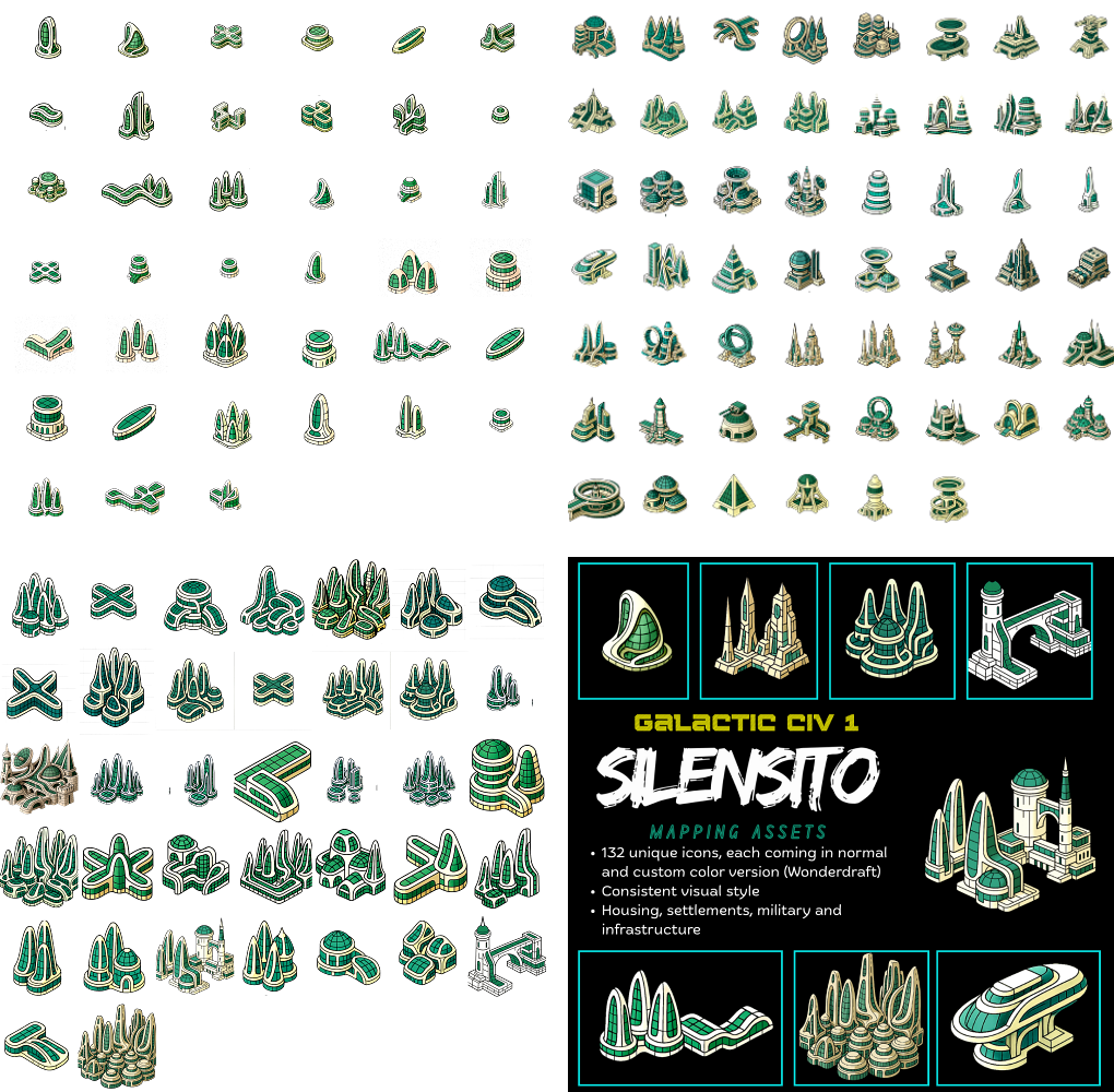 The Galactic Civilizations asset packs offer distinctive, visually engaging, and functional icons for sci-fi and futuristic settings. The overwhelming majority of mapping assets available today cater to medieval fantasy or overly simplistic geometric styles, leaving mapmakers who explore space and advanced technological worlds with very limited options. After struggling personally to find good alternatives, I created these symbols to offer genuine variety and visual depth without sacrificing readability.