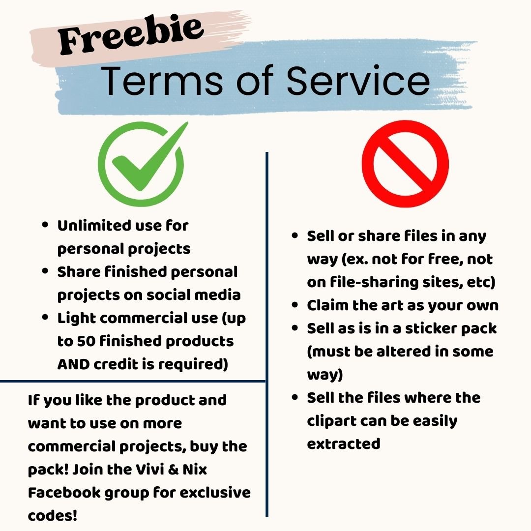 ✔ Light commercial use (up to 50 finished products with credit-- "Art by Vivi&Nix Designs")