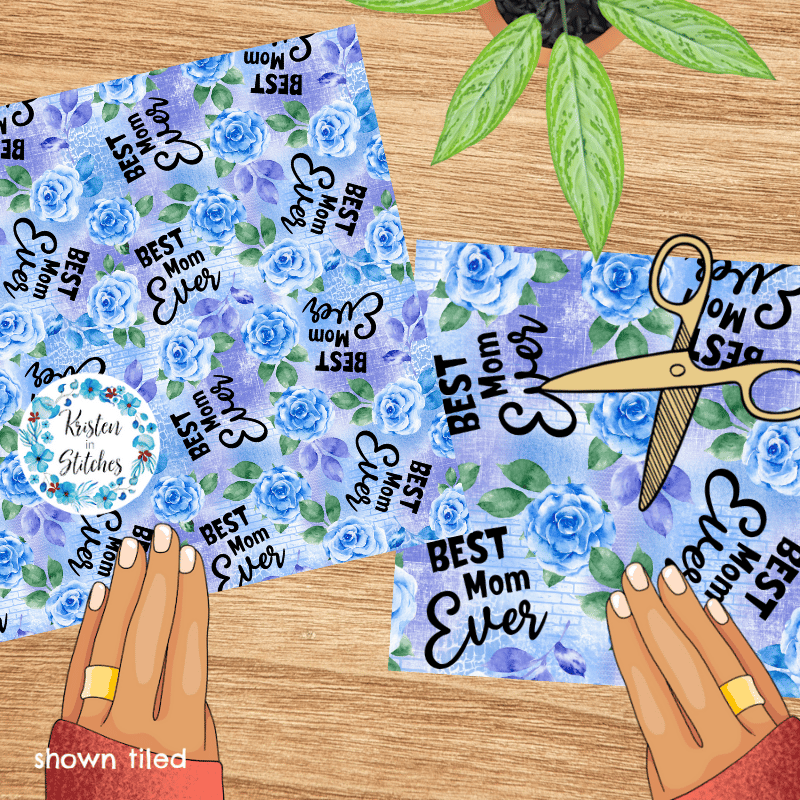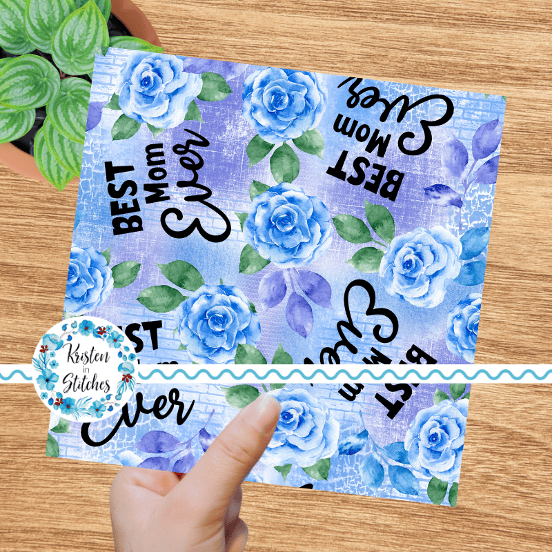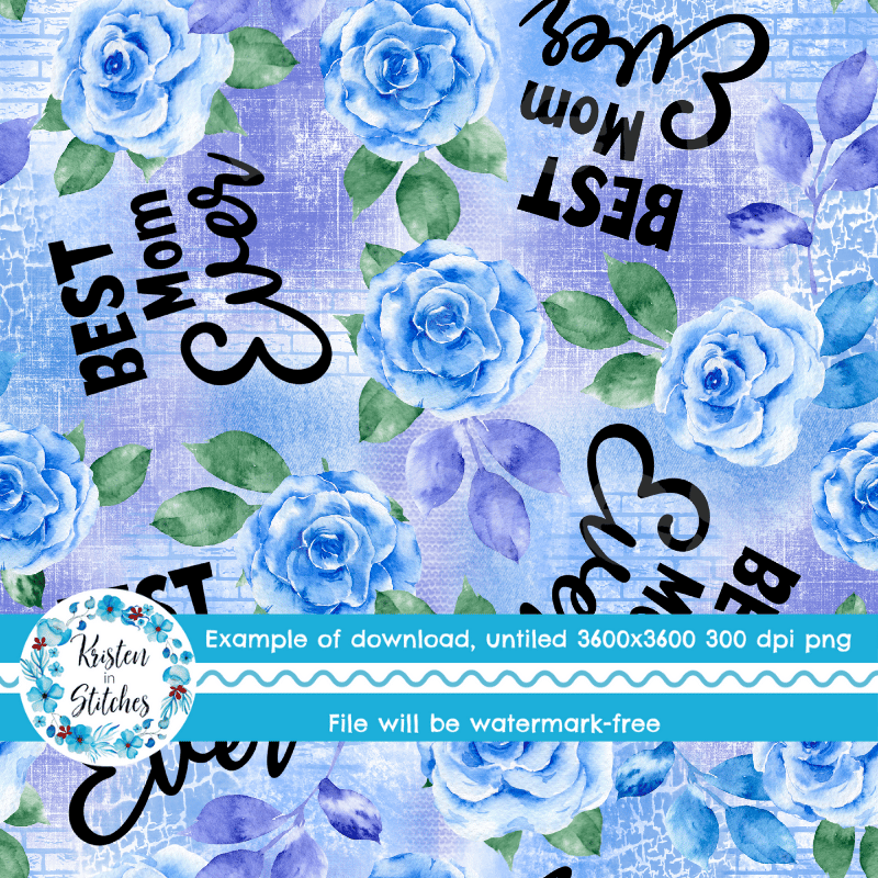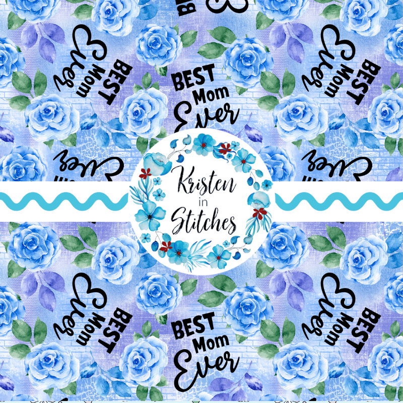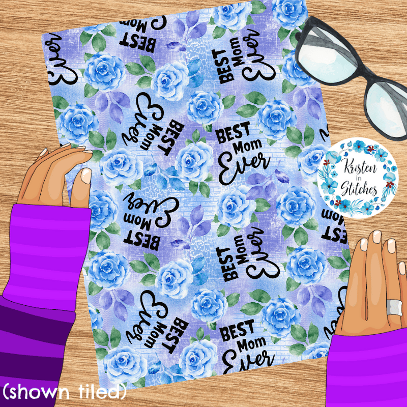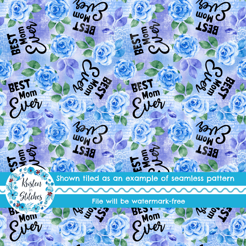 Best Mom Ever Mother's Day Floral Seamless Pattern, Blue