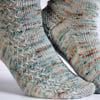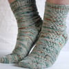 The Scots word for a kingfisher, Killieleepie is a fun sock pattern with slipped stitch cables creating a gentle rippling pattern up the side of the foot. Knit from the toe up with a gusset and heel flap and flexible length fitting on the foot and the leg, these socks are a great knit for everyone!