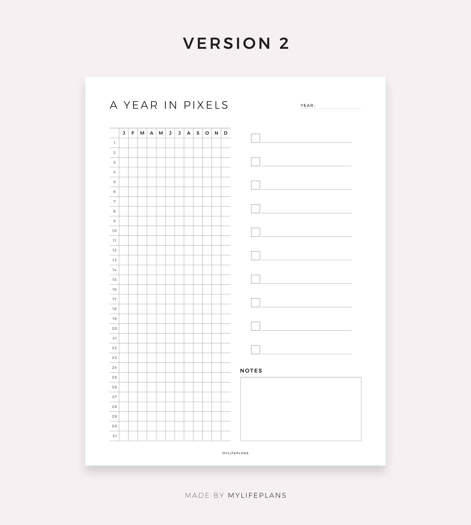 A Year In Pixels – A modern, minimalist template designed for effortless use on iPads and tablets. Simply download, open in your favorite note‑taking app, and start using it right away.