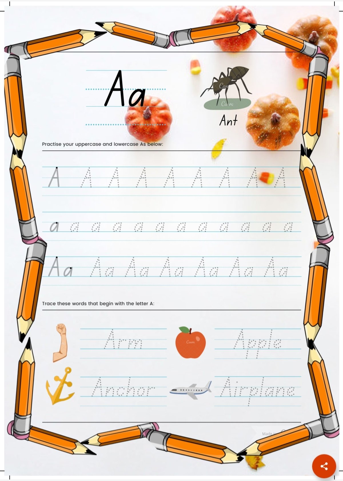 Each alphabet has 2 workbook pages to practise plus A-Z uppercase letters practice. Besides, you can print as many pages you like of the workbook as the worksheet to practise letter tracing with the kids aged between 3-6. Useful for the kindergarden teachers as well to use this digital product as ready made worksheets for the students.