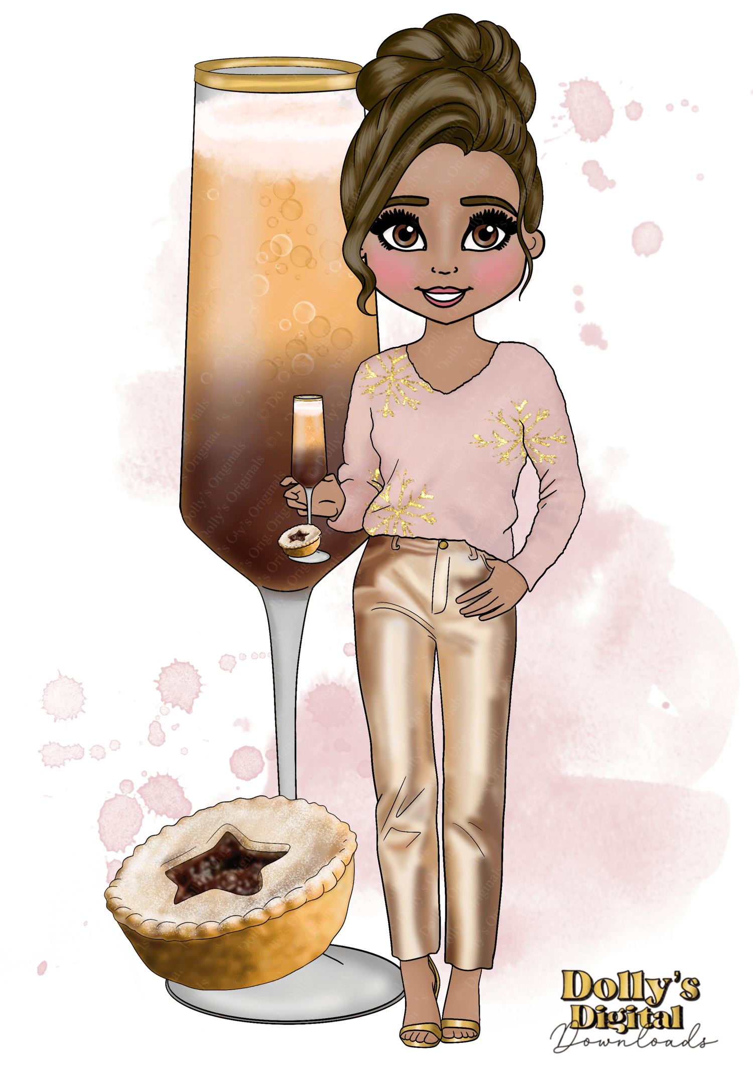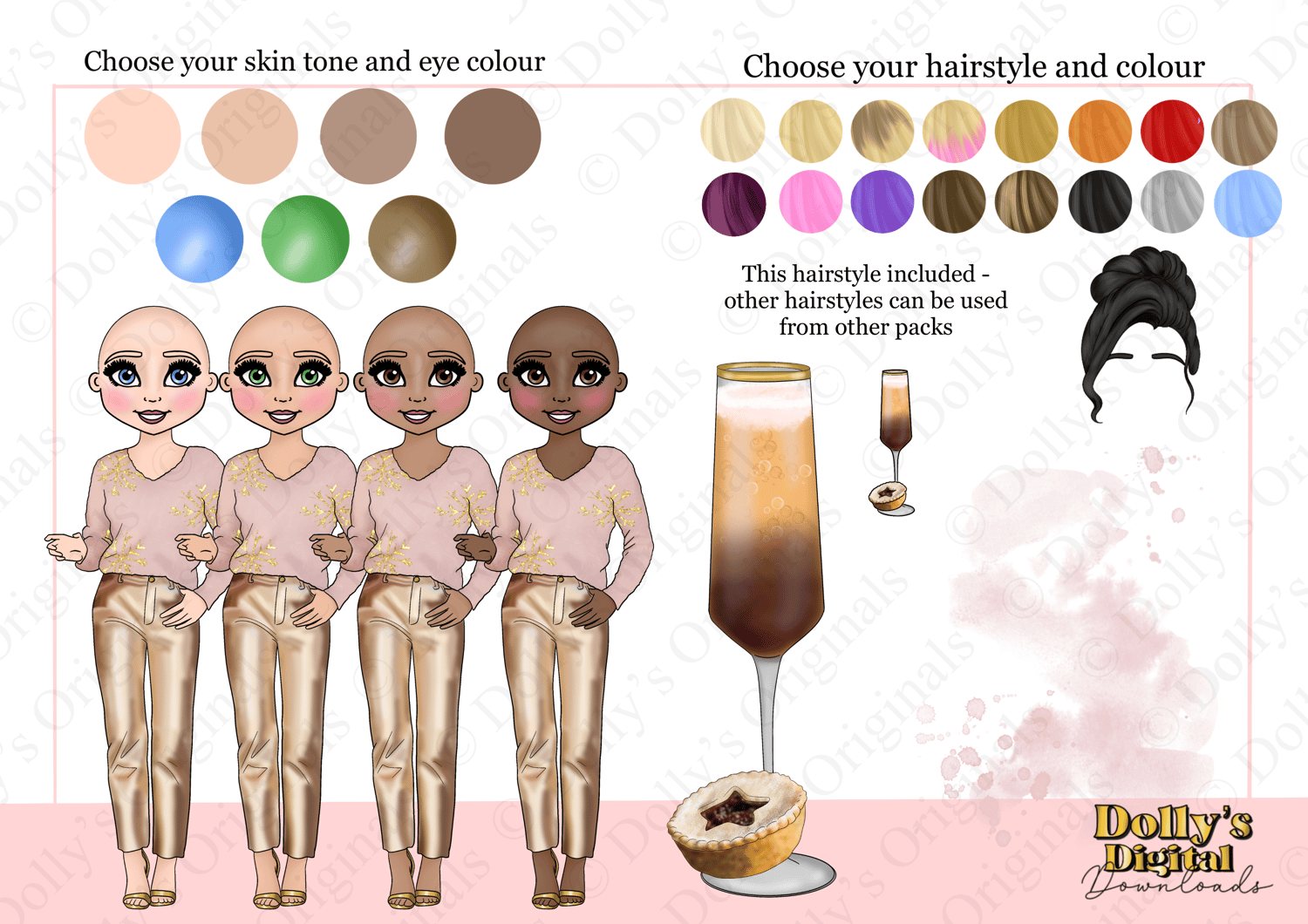 Instant digital download of our Mince Pie Mimosa Cocktail Dolly Character Bundle PNG (35 PNG’s)