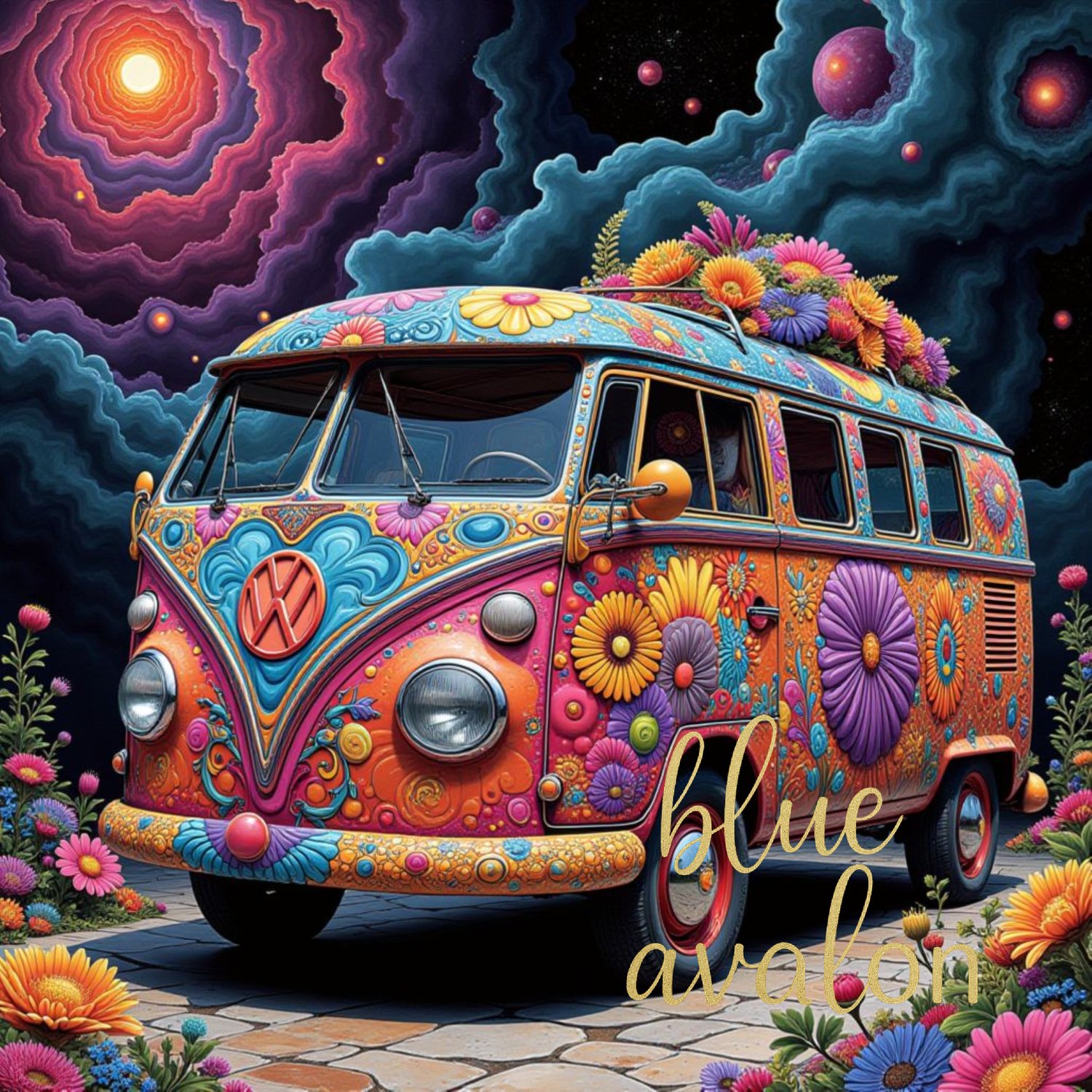 A rolling burst of colour and peace, this psychedelic combi van channels the free-spirited energy of the 1960s. Covered in swirling rainbow hues and adorned with bold, blooming flowers, it's more than just a vehicle - it's a symbol of freedom, love and joyful rebellion. With its retro shape and eye-popping colours, this van looks ready to cruise straight into a technicolour dream.