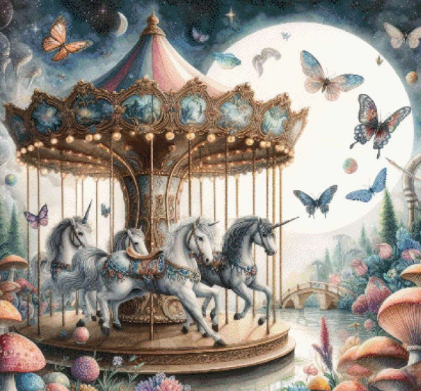 Unicorn Magic Merry Go Round Cross Stitch Pattern PDF Instant Download