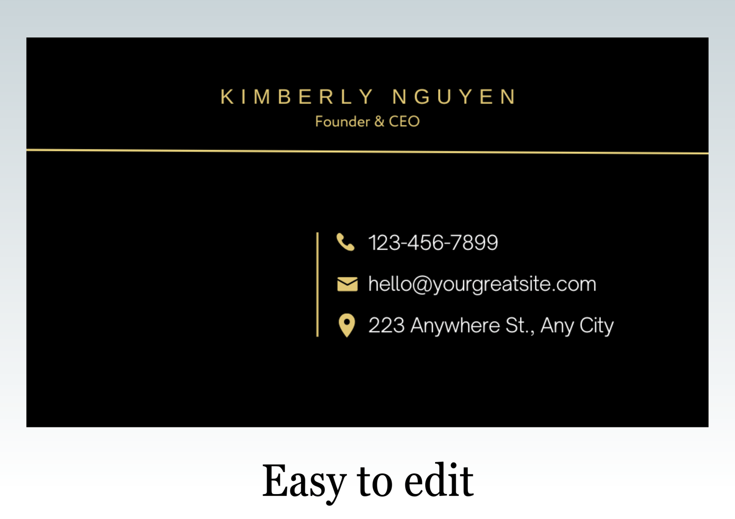You have plenty of room on the back of the card to list your contact details, including your name, job title, phone number, email address, and website. Your information will be presented with professionalism and clarity Perfect for professionals, creatives, and entrepreneurs, it leaves a lasting impression at networking events, meetings, and conferences. Make a statement With our minimalist, stylish Business Card! You can make a statement and improve the perception of your company.Â