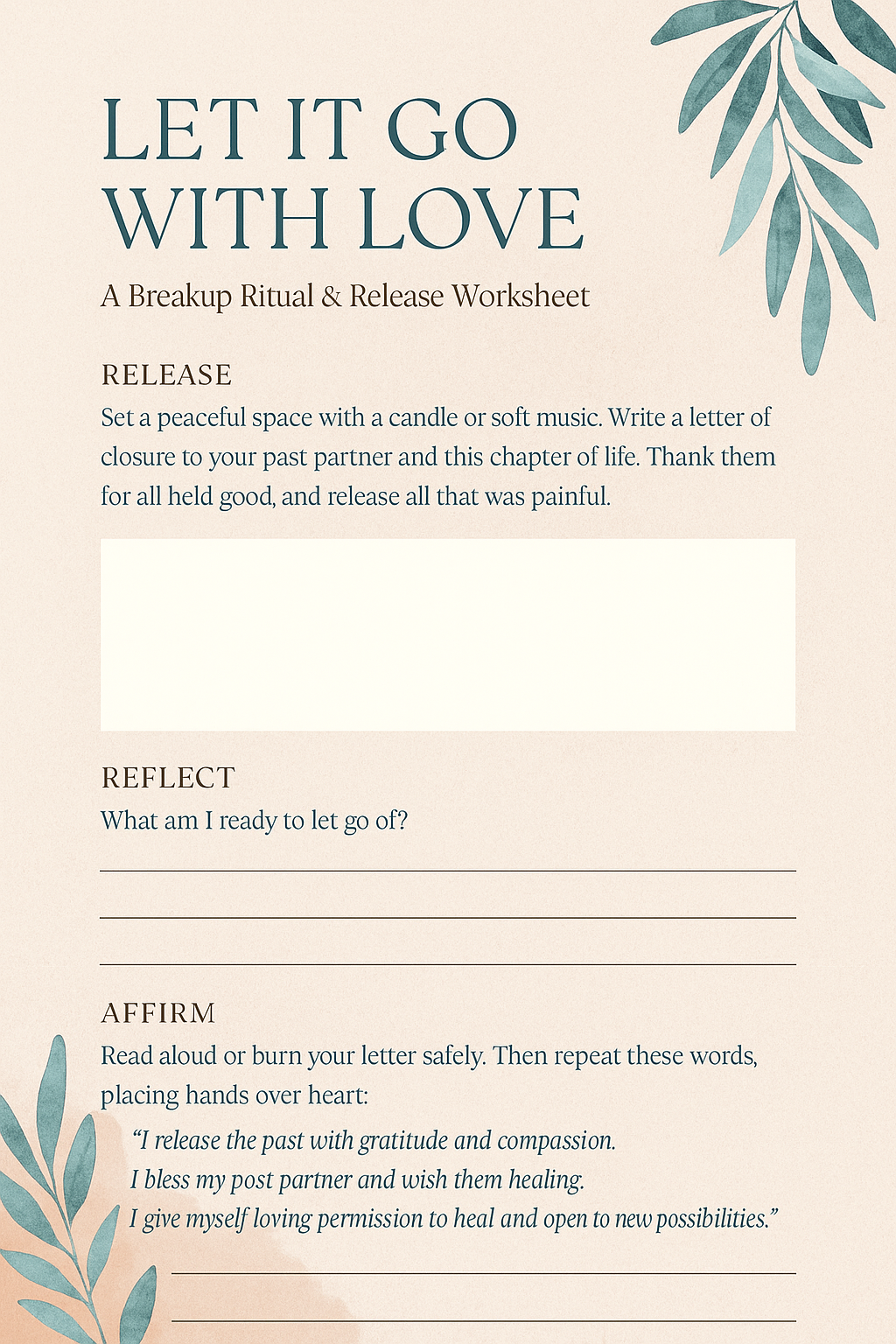 🌙 Let It Go With Love: A Gentle Breakup Ritual Worksheet