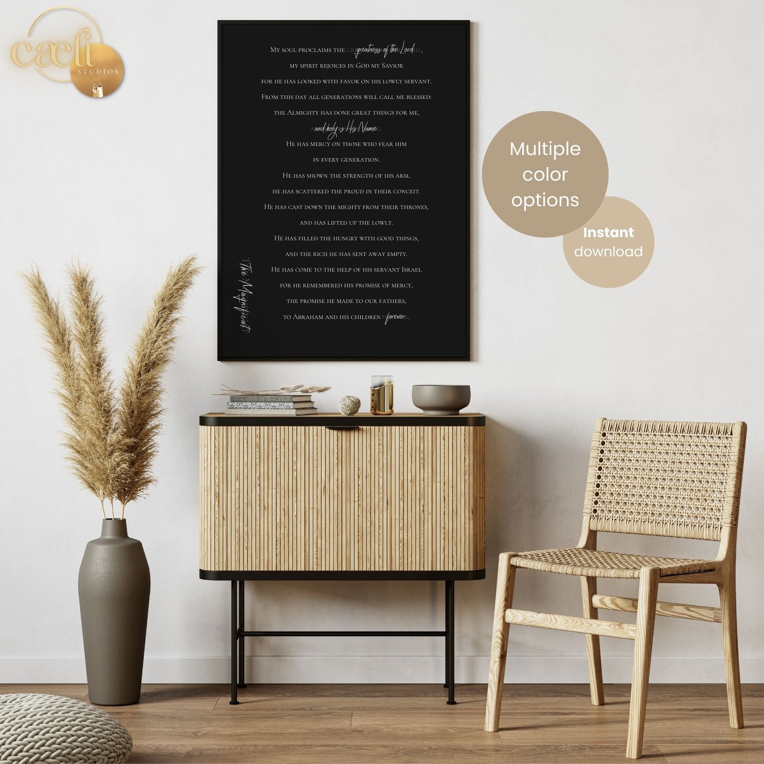 This digital download includes a Magnificat (my soul proclaims the greatness of the Lord) Prayer printable wall art design perfect for a modern, minimalist or bohemian Christian home with 9 different color options.