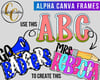 Take your Canva designs to the next level with this fun and bold Canva frame font! This unique set includes every letter of the alphabet as individual Canva frames – just drag and drop your favorite patterns or photos right into each letter.