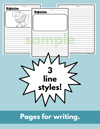 There are pages for writing so that students can learn about the baboon and then write about it. They can use the provided sentences for handwriting practice or journal entries. There are 3 styles of lines -- primary dotted lines and regular lines with 2 different spacing options.